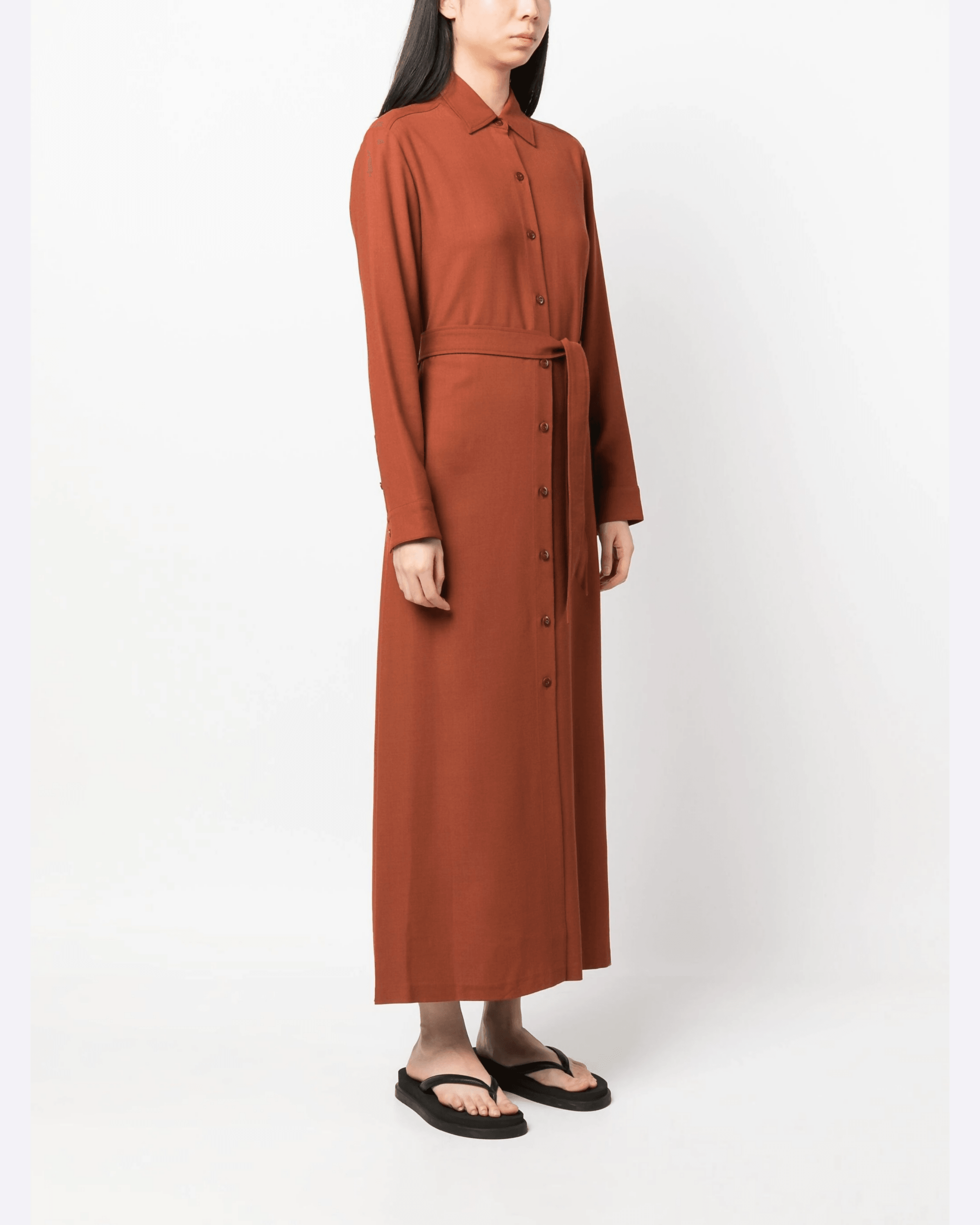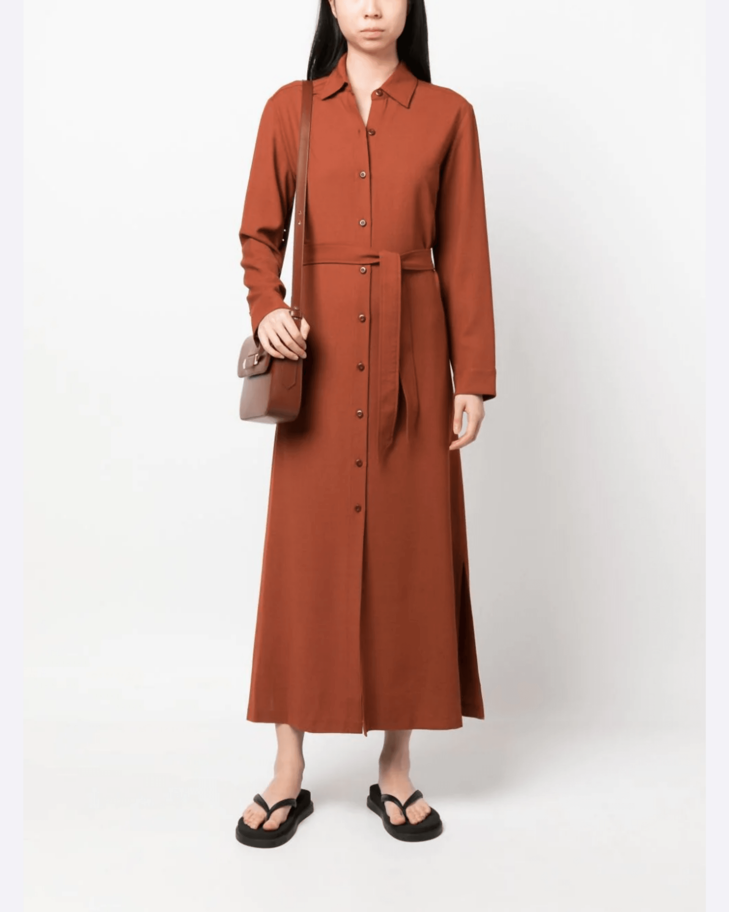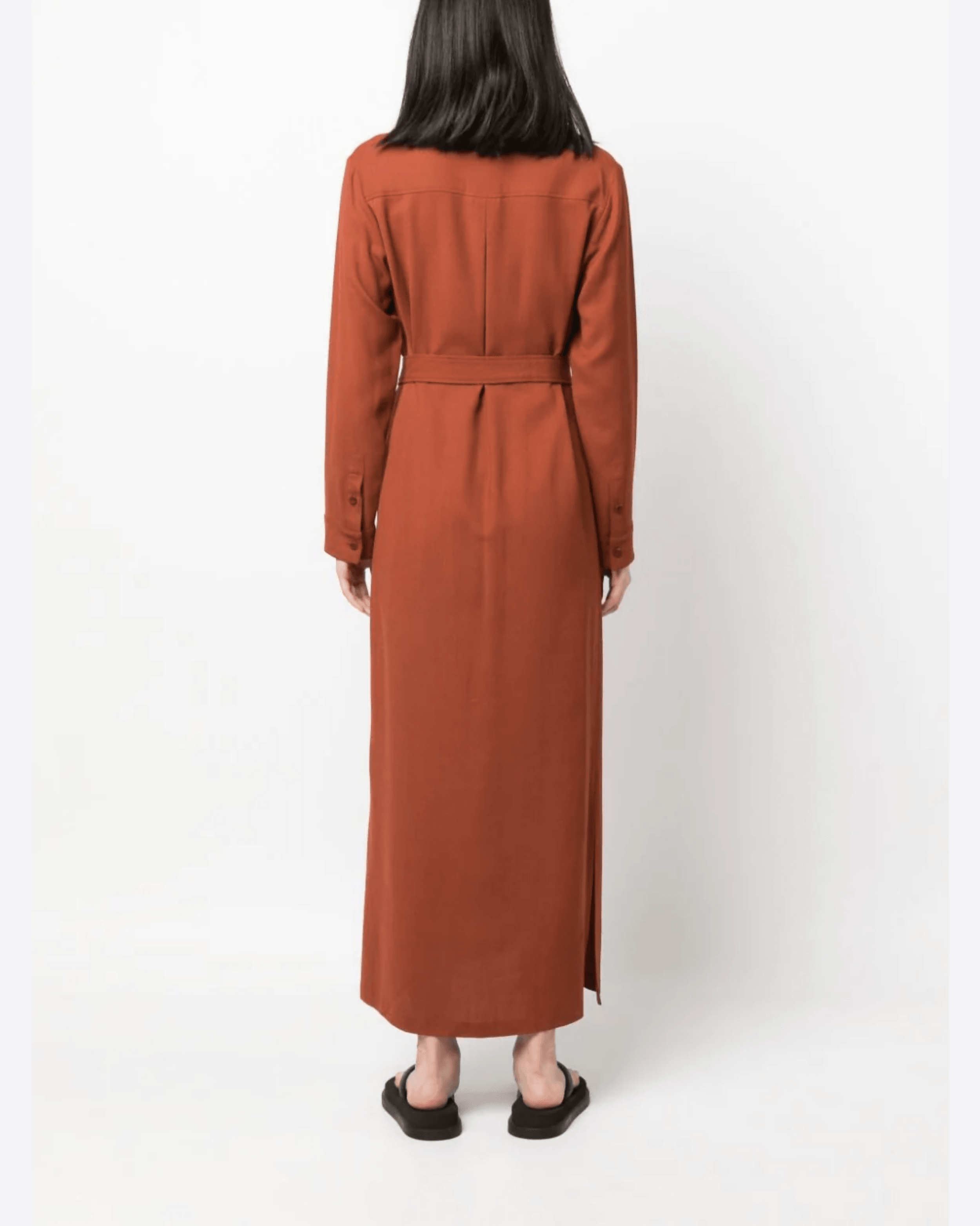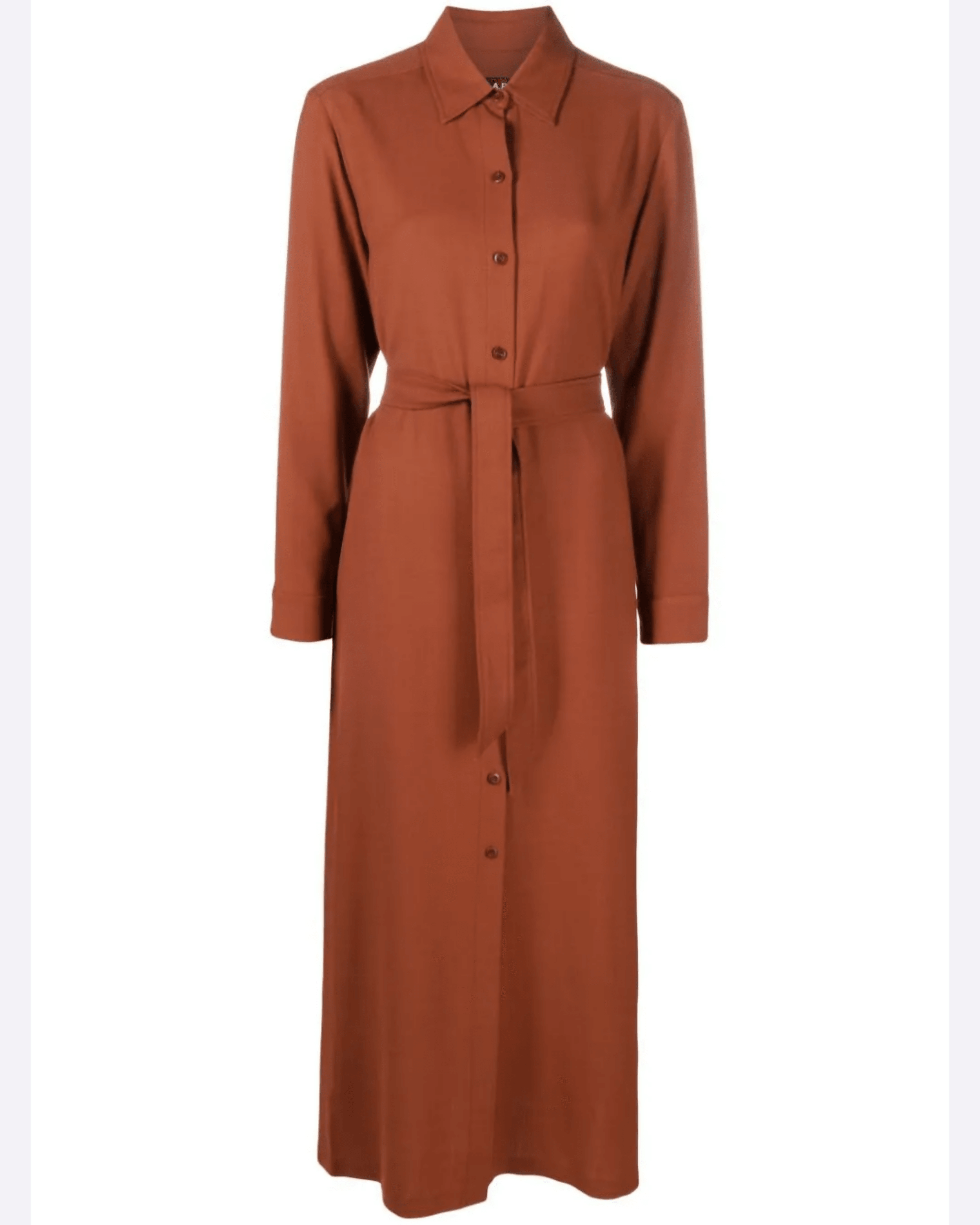 French label A.P.C., meaning Atelier de Production et de Creation, is renowned for its timeless designs and impeccable construction. Imagined in burnt orange, this Gwyneth shirtdress falls to a maxi length and is minimally detailed with a matching detachable belt and side slits.