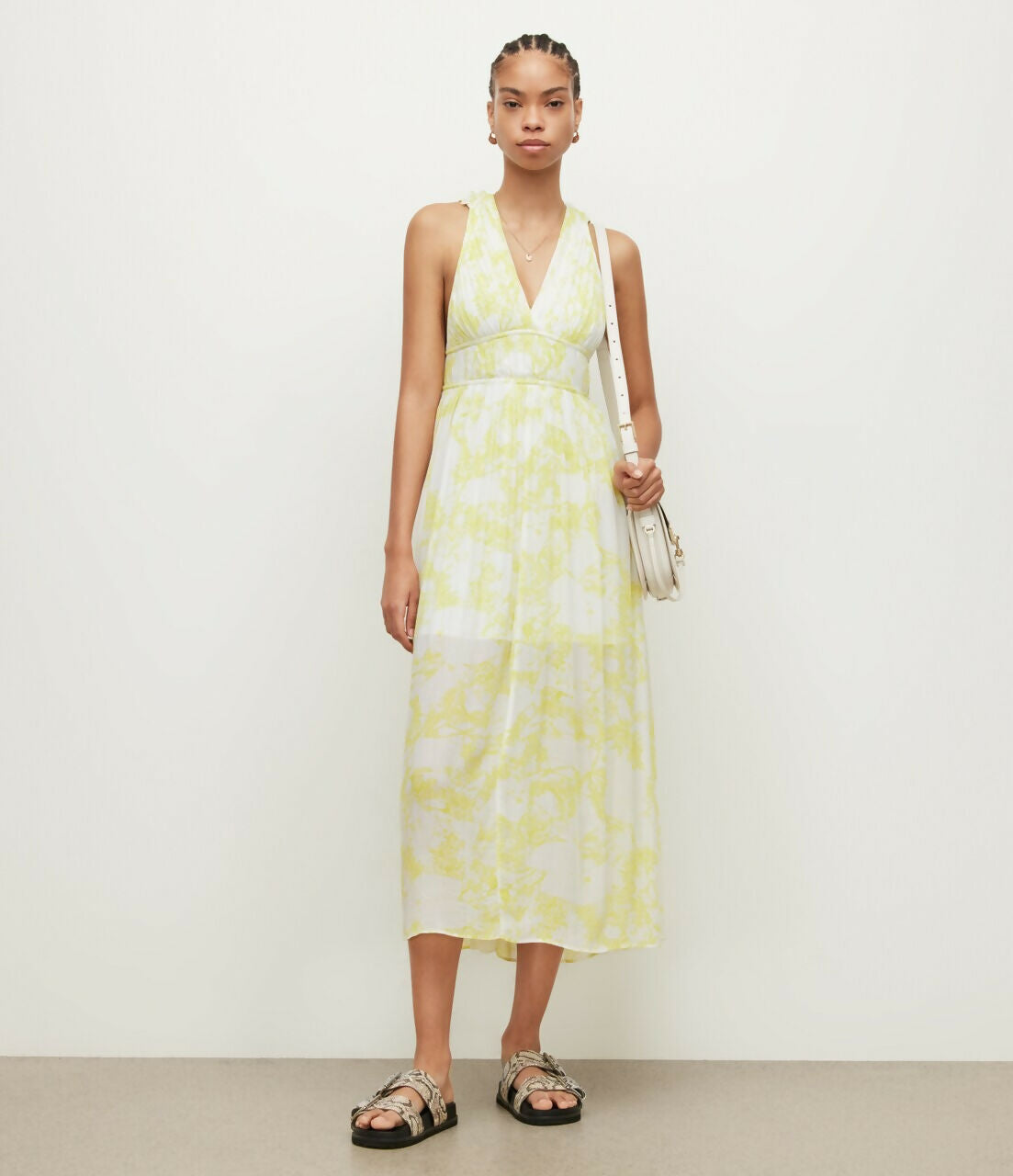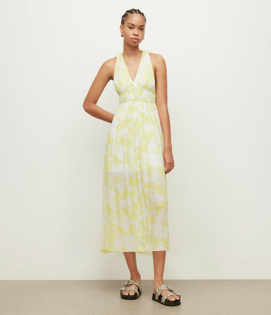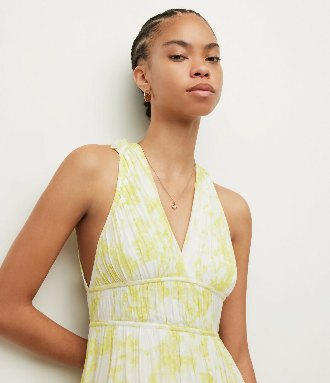 The Avery Dress features a flattering V-neckline and a softly pleated bodice that shapes the waist before falling into a flowing, floral maxi skirt. Designed with side splits for ease and movement, it’s finished with a smocked back panel for comfort and a side zip closure.