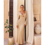 Farah blends structure and movement through its flared sleeves, front ring detail, and flowing silhouette. Designed to flatter all shapes, it captures the essence of understated luxury. Long, flared sleeves
