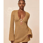 Our best selling dress now comes in a shorter option. This Montego Mini Dress is made in our lace crochet fabric with a plunging neckline, gold ring detail and a flattering silhouette that makes it the perfect dress.