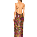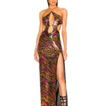 - Gold-tone halterneck chain with adjustable lobster clasp closure.