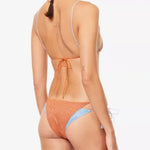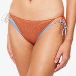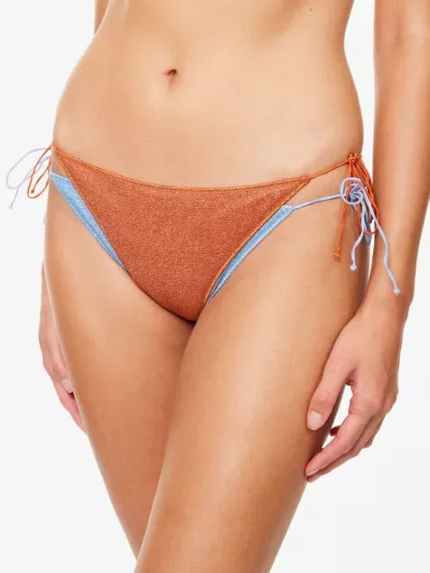 - Bottom: Mid-rise, elasticated waistband, self-tie straps, bi-colour, shimmer metallic finish, moderate rear coverage
