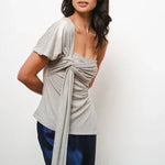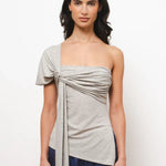 Cut in an asymmetric silhouette with a gathered knot detail, our one-shoulder Mimi Top is designed to feel soft yet sculpted. Made from a 95% cotton, 5% spandex blend, it offers gentle stretch and a smooth, breathable fit that moves with you. Style it with our Seraphina silk trousers, tailored trousers, skirts or denim for a refined look. A versatile wardrobe staple, and elevated basic.