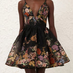 Pavilion V-Neck Black Mini Dress