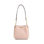 Chic and practical, this Michael Kors Teagan Bucket Bag is crafted from soft, pebbled leather in a delicate blush pink. Featuring a structured silhouette, magnetic fastening, and internal pockets, it keeps your essentials secure and organized. The adjustable crossbody strap (up to 127cm) offers versatile wear, while the brand logo and textured finish add a polished touch.