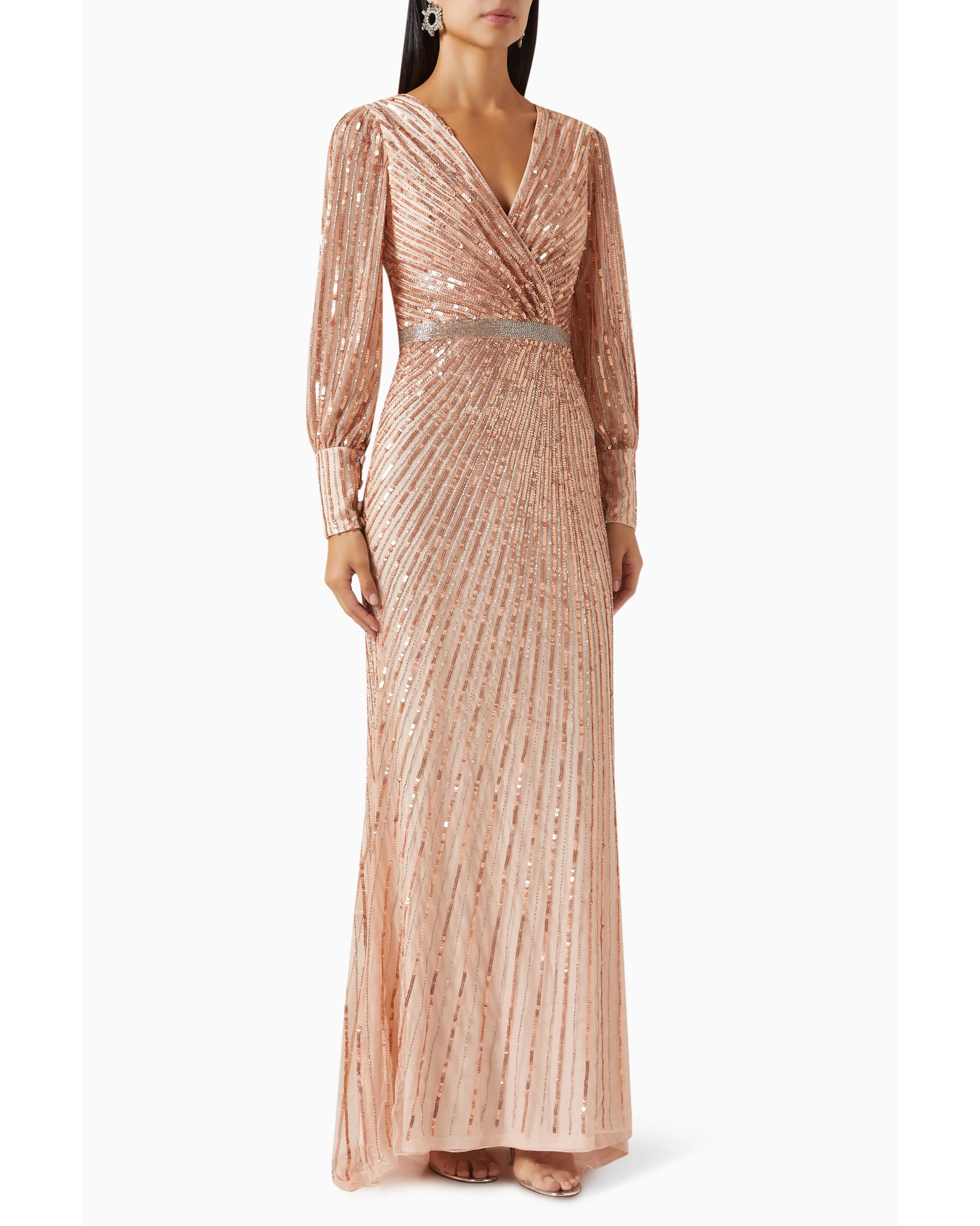 Prepare your outfit for the next special occasion with this exquisite dress from Mac Duggal. It is expertly crafted from sequinned mesh that brings a lavish sheen to the elegant bishop sleeves, wrap-effect bodice and ankle-grazing skirt.