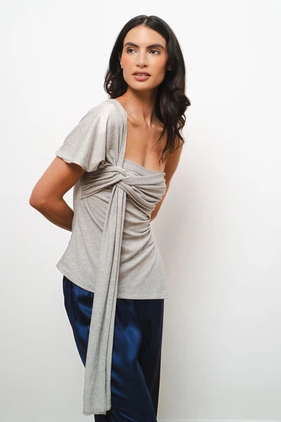Cut in an asymmetric silhouette with a gathered knot detail, our one-shoulder Mimi Top is designed to feel soft yet sculpted. Made from a 95% cotton, 5% spandex blend, it offers gentle stretch and a smooth, breathable fit that moves with you. Style it with our Seraphina silk trousers, tailored trousers, skirts or denim for a refined look. A versatile wardrobe staple, and elevated basic.