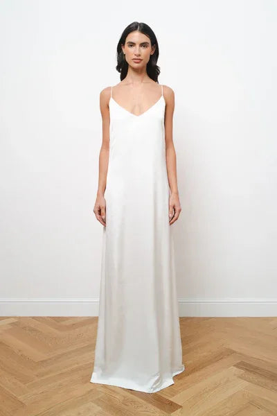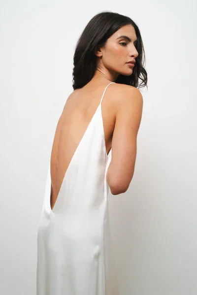 Refined and modern, our Seline maxi dress is a modern take on the classic slip dress silhouette. Designed with a clean front and a softly draped open back, it offers a timeless silhouette that flatters from every angle. Crafted from a double-lined rayon-viscose blend, the fabric is soft, and lightweight, offering ease of movement without clinging. Ideal for multiple occasions.