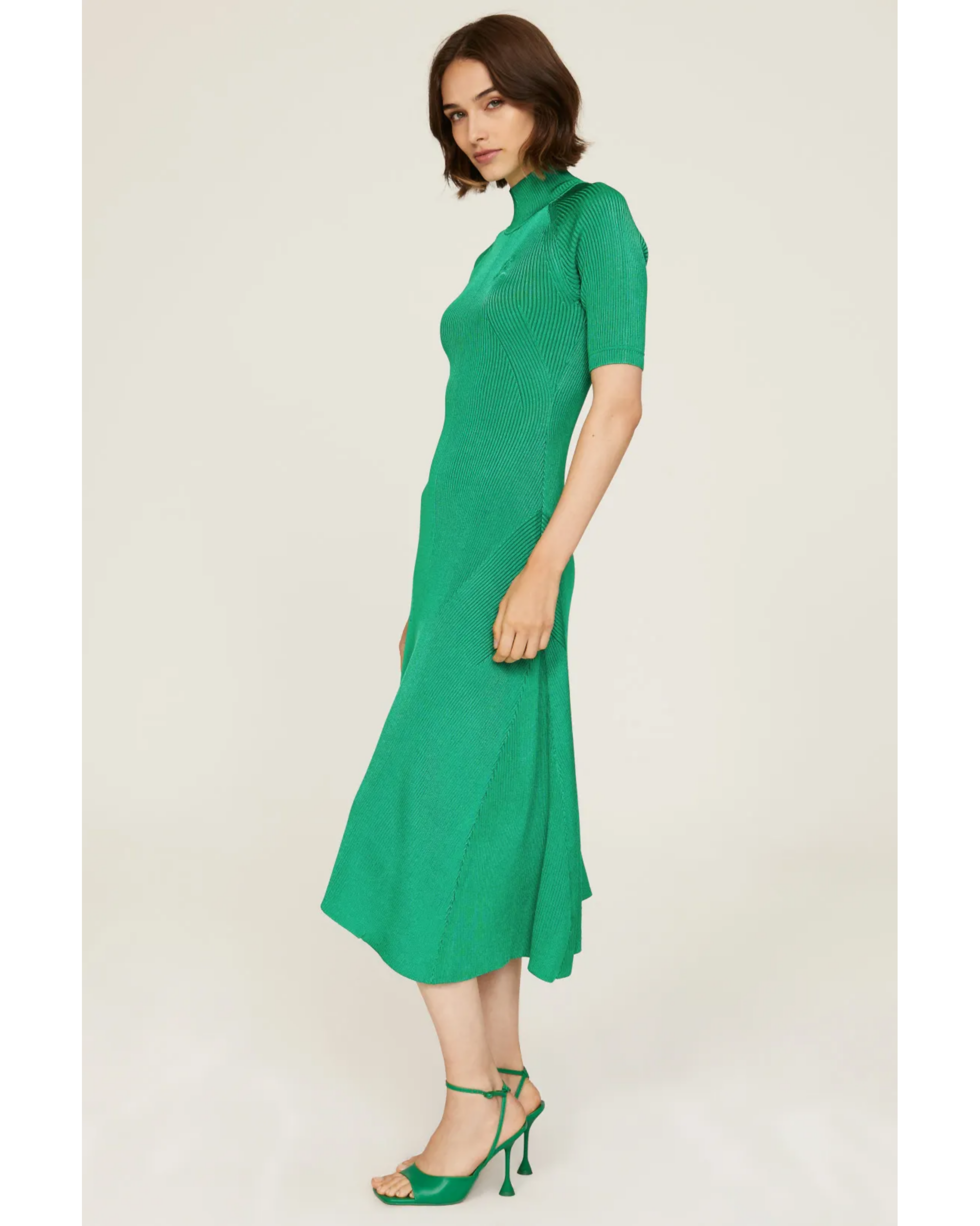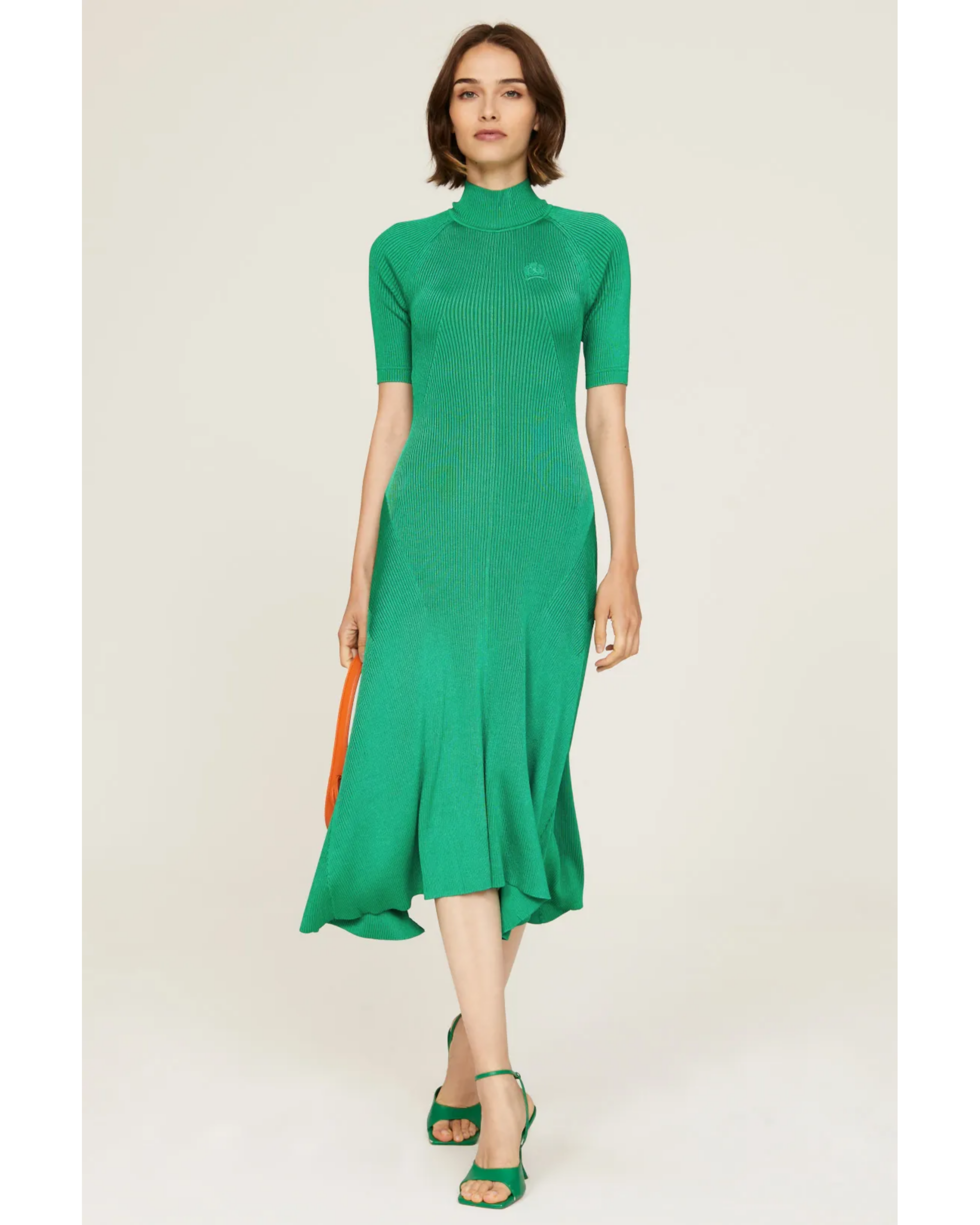 A stretchy rib highlights your figure in this bright and cheery Tommy Hilfiger dress topped with a sophisticated mock neck.
