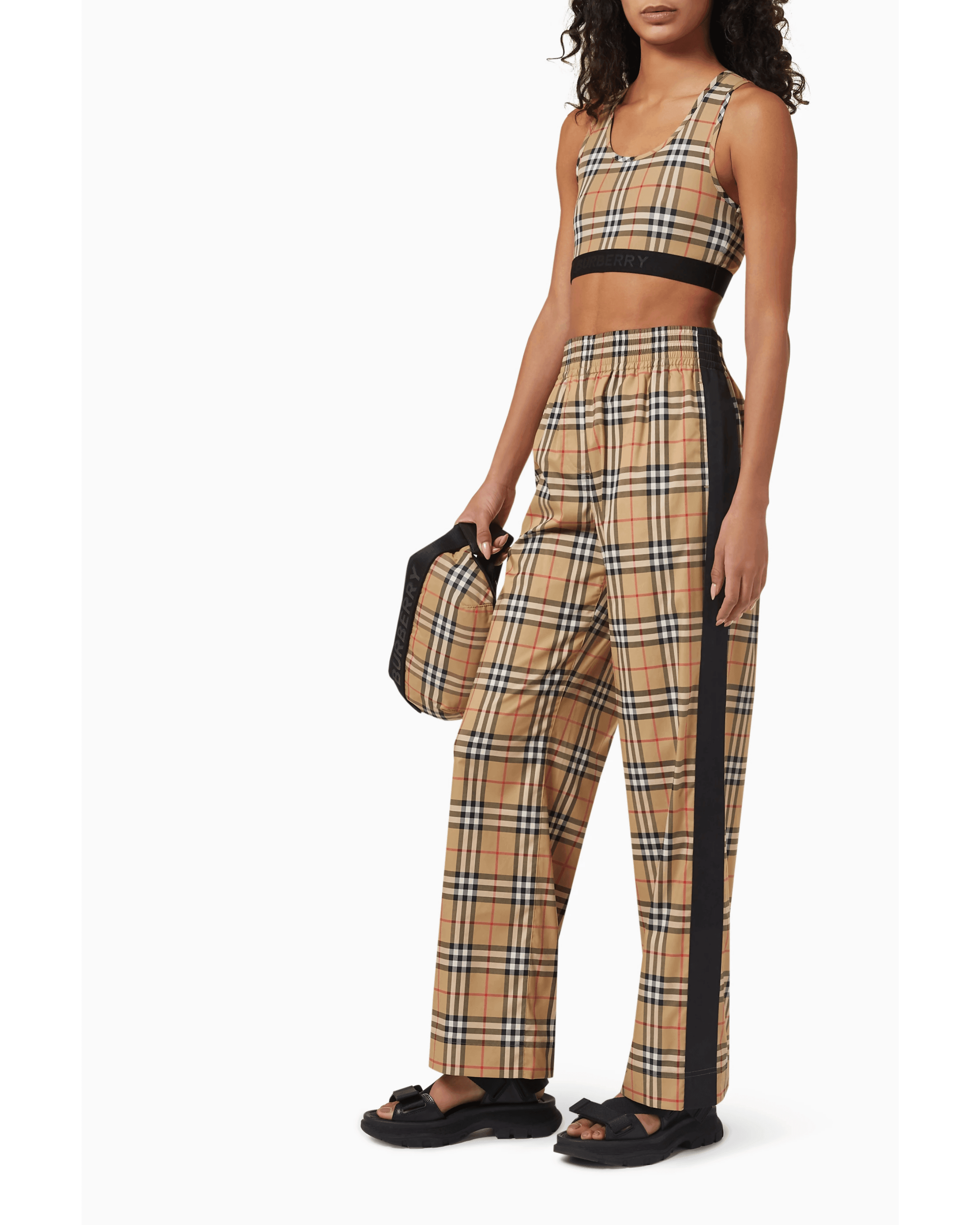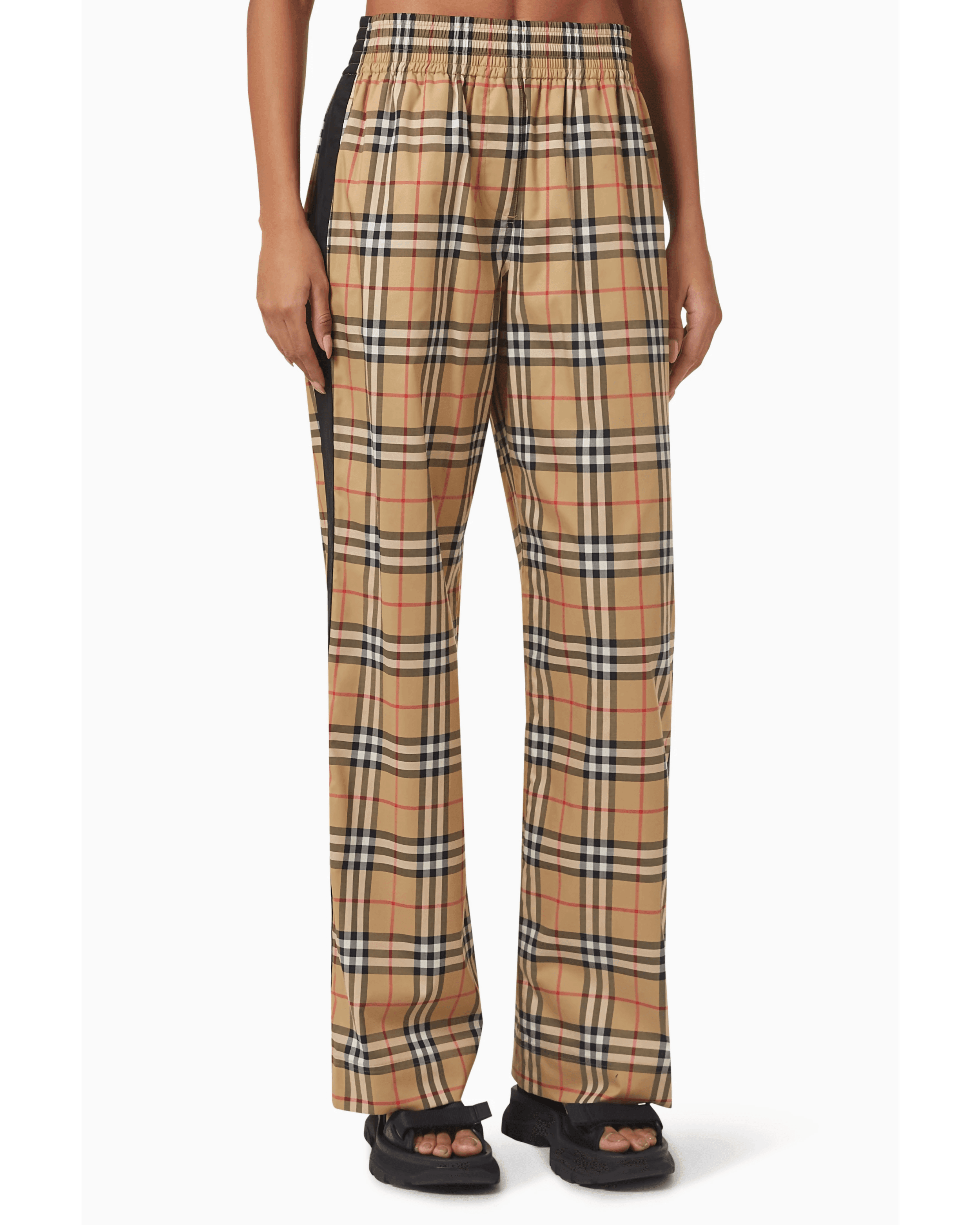 A moment of appreciation needs to be taken for the label's vintage heritage print and sporty silhouette, these pants bring class and edge to your wardrobe. Defined by a comfortable wide-leg design, they perfectly mirror every detail the British house is known and loved for. Match the contrasting side stripes to your contemporary accessories.