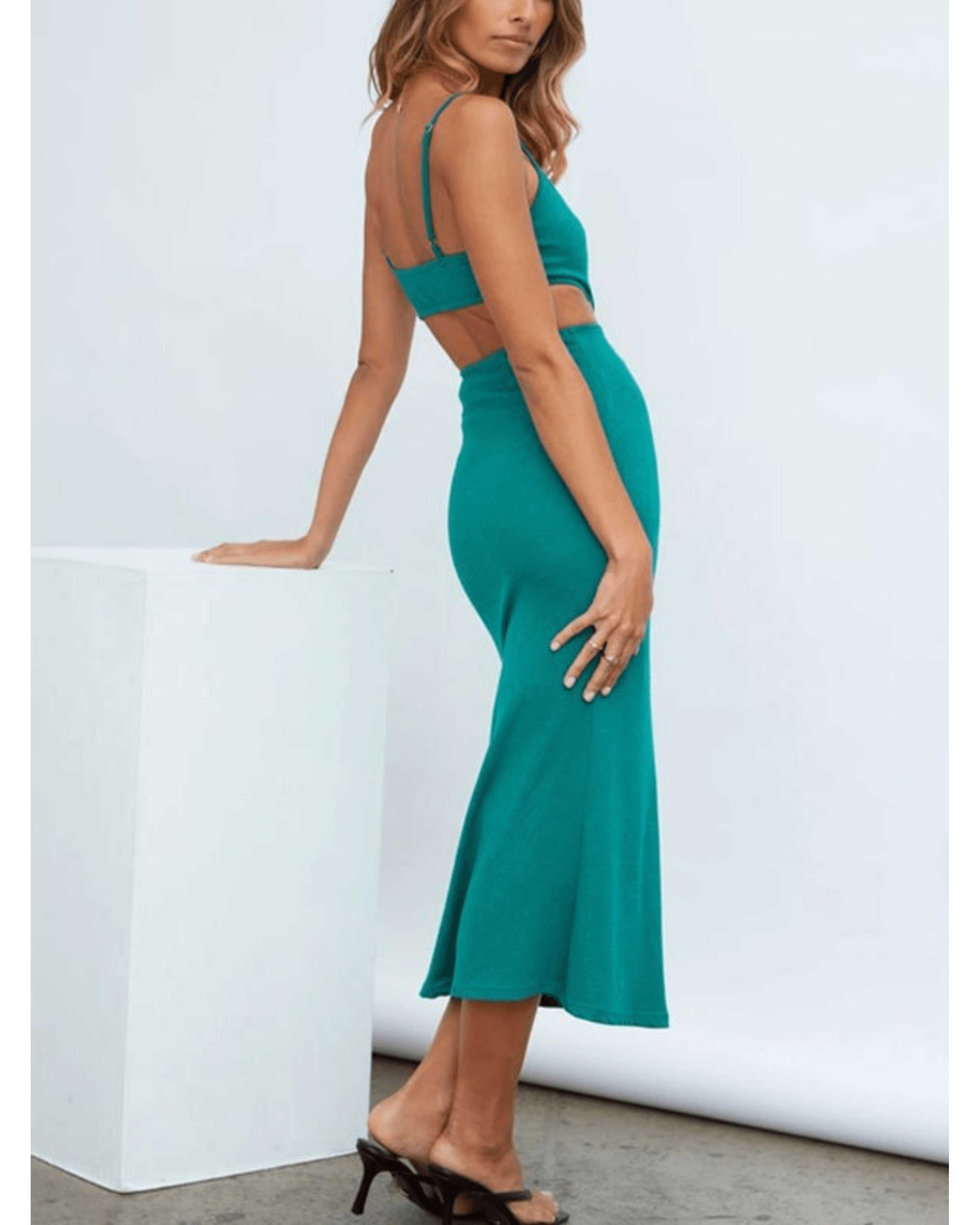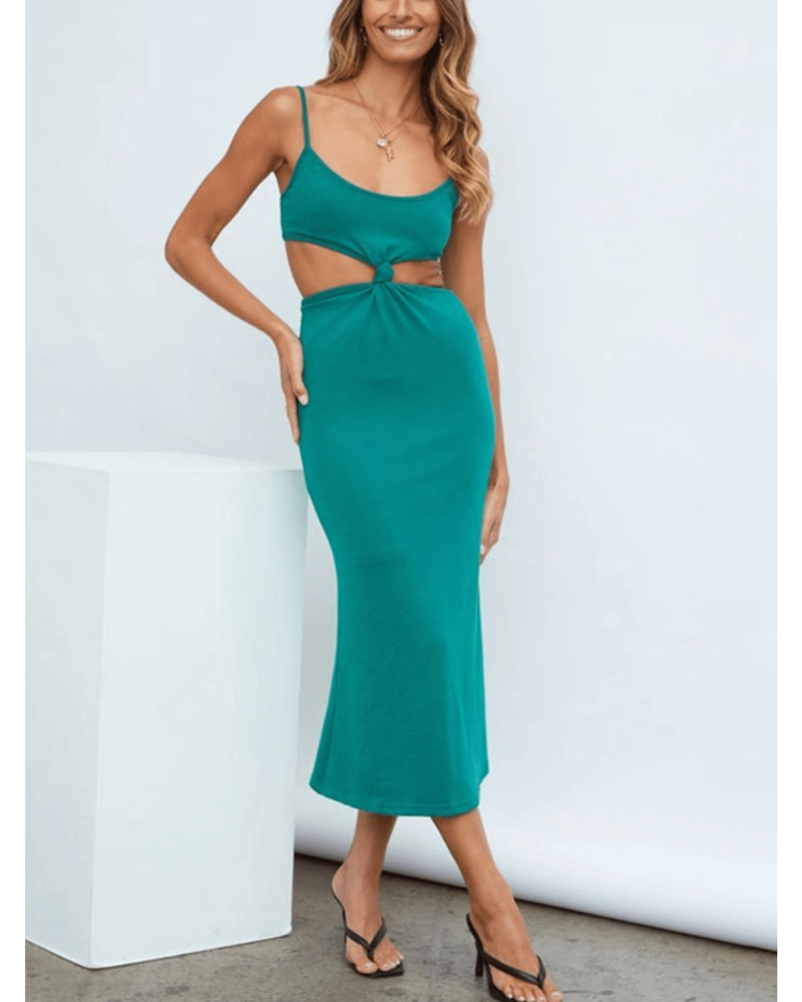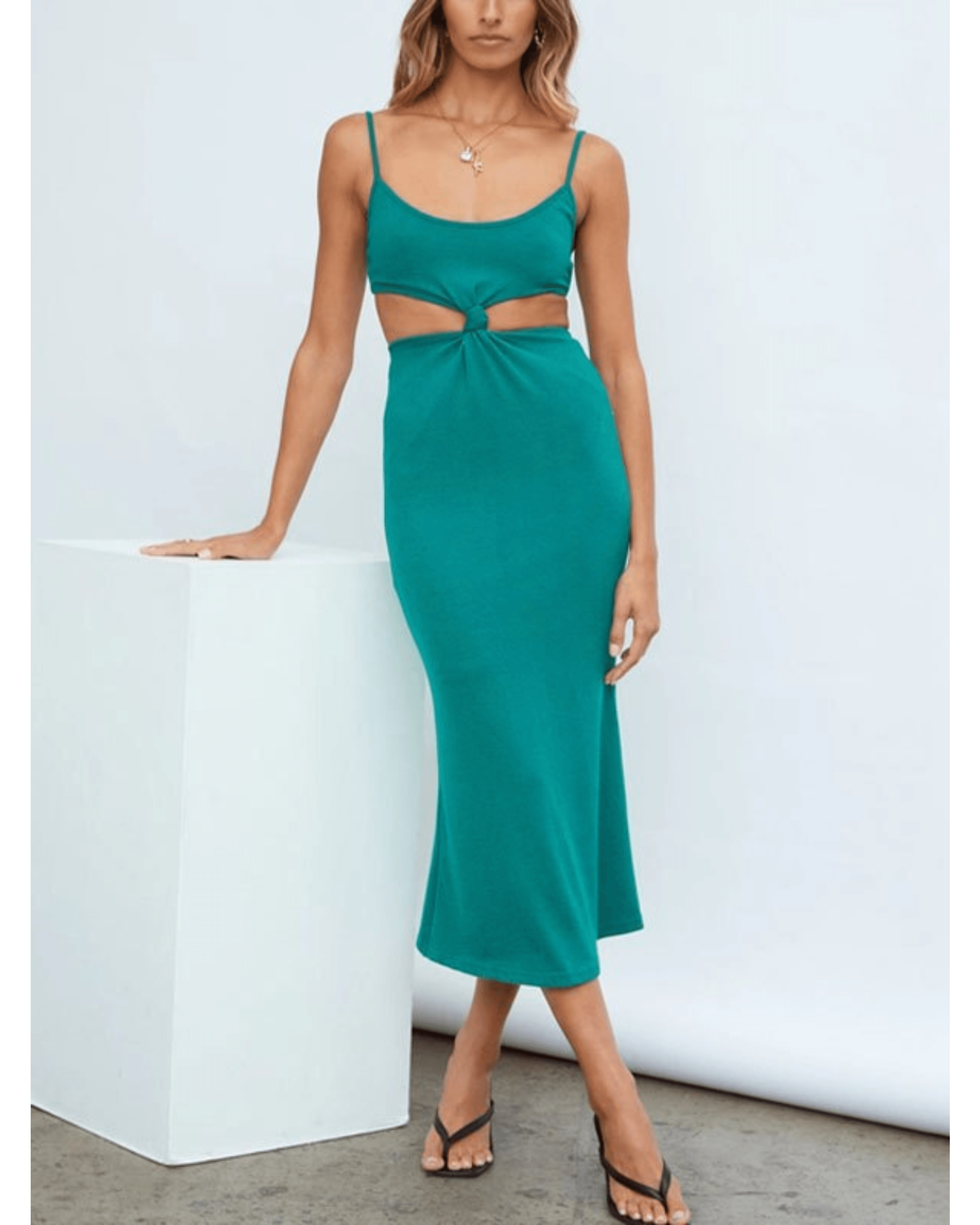 - Length: Midi Dress -Design: Knotted Detail, Cutout From Side To Back