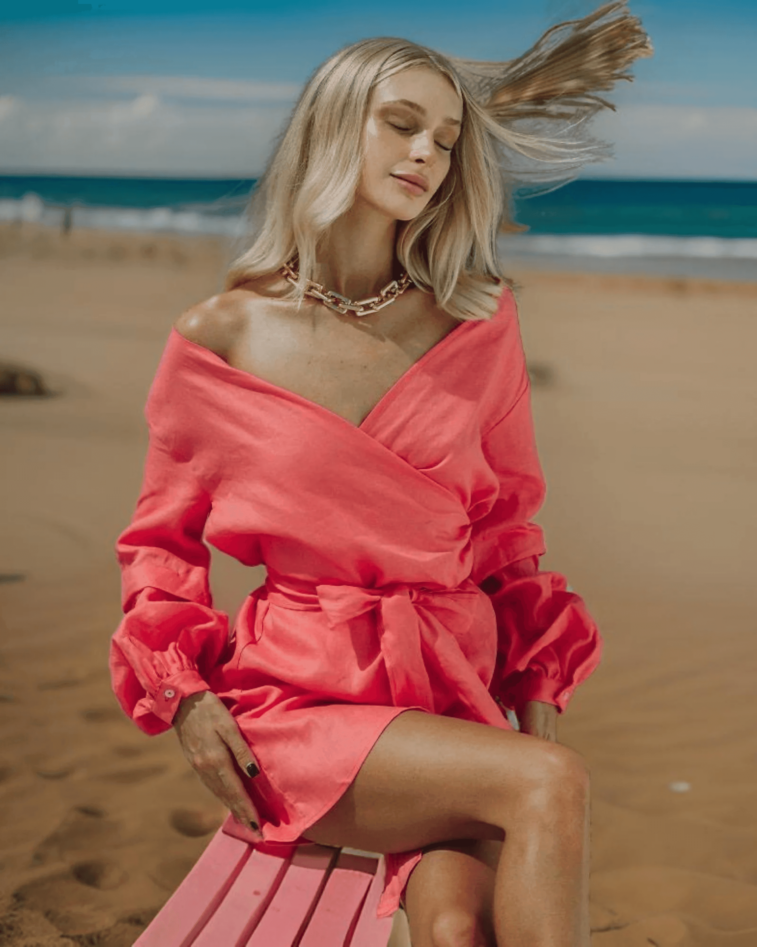 Chic Le Frique- Mia Off The Shoulder Dress- Coral