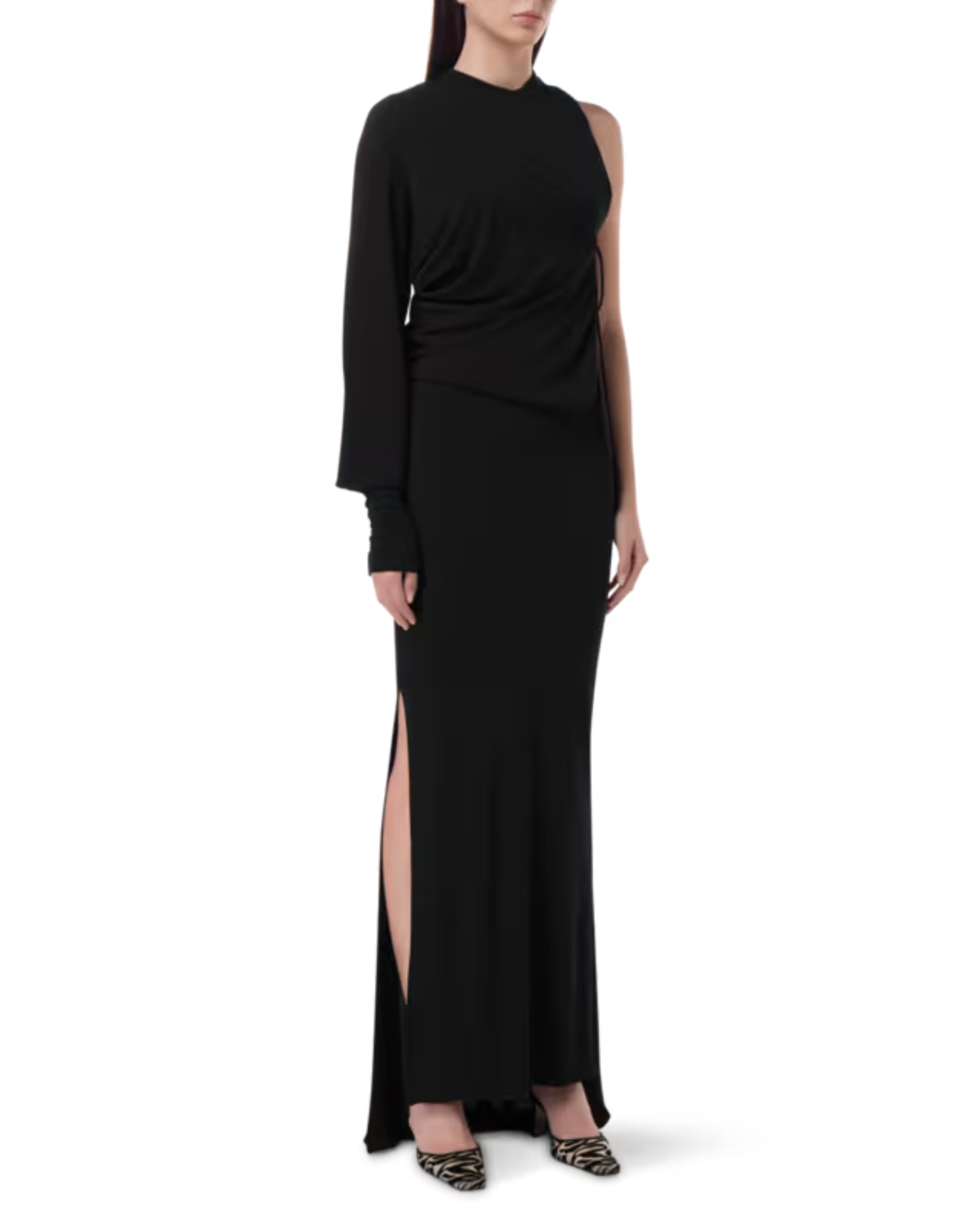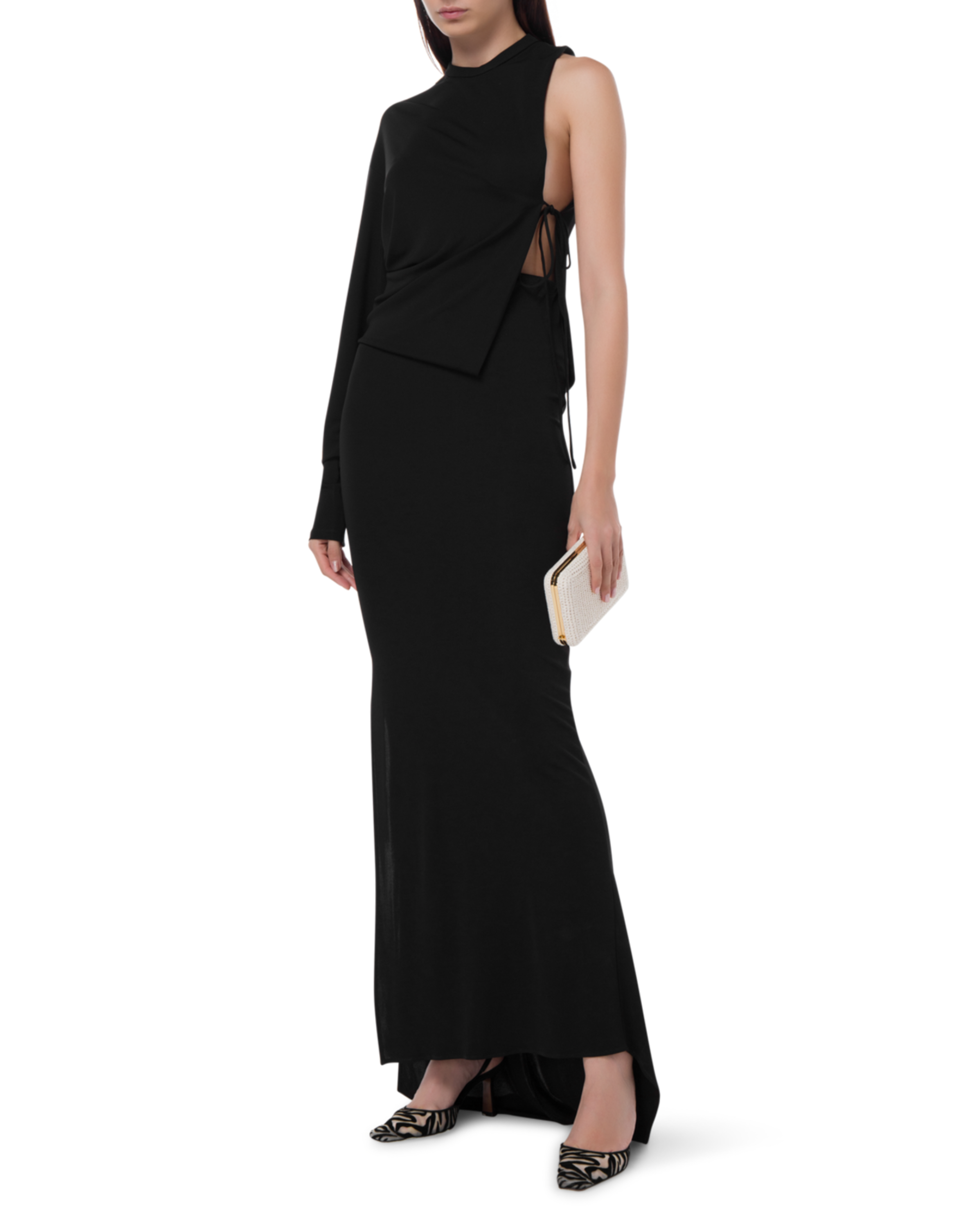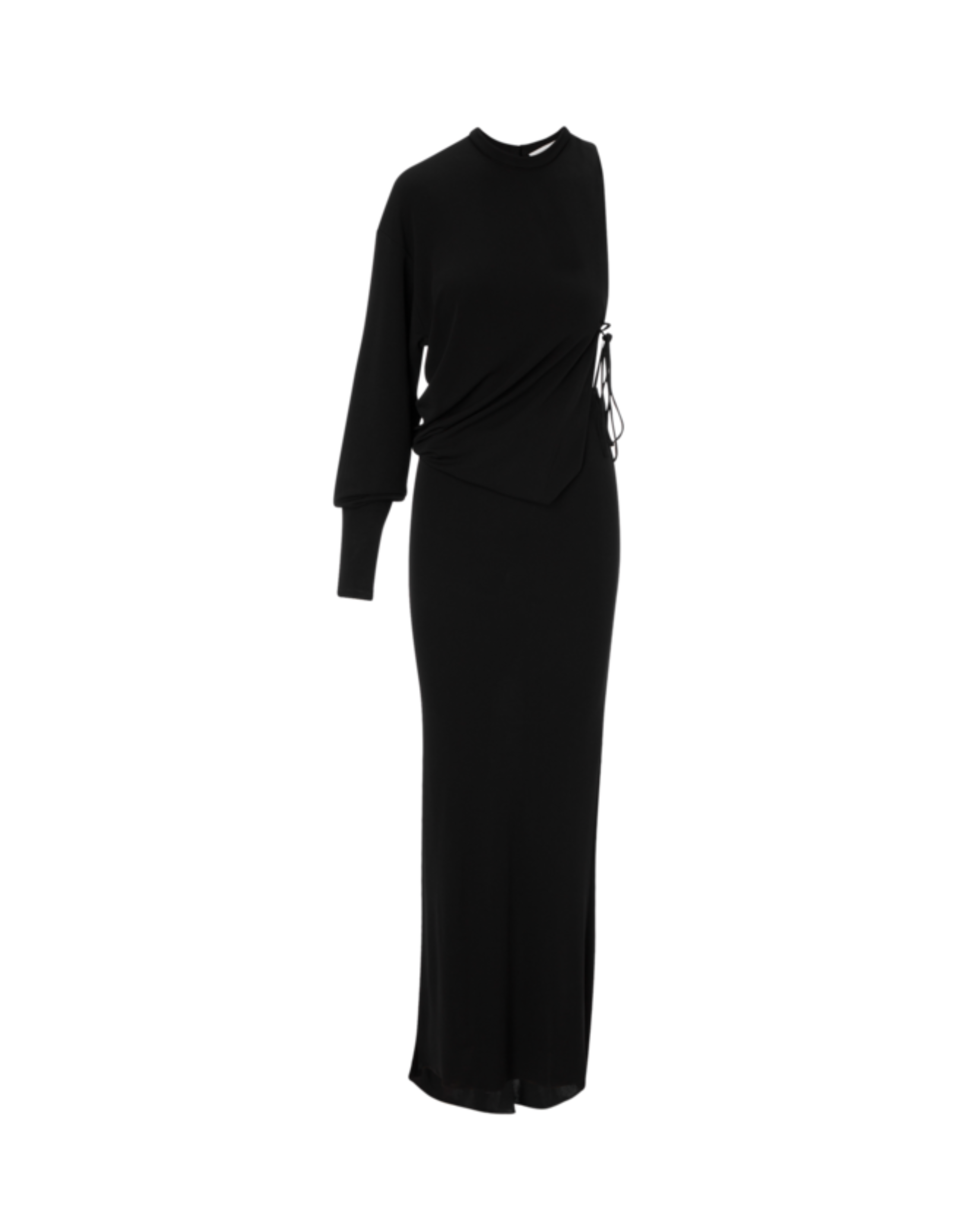 Soak your look of the day in feminine elegance while staying comfortable in this Sliced Jumper Gown by Christopher Esber. Boasting modern craftsmanship with a side split on the top closed with self ties and a generous split in the skirt, it has a long cuffed sleeve and button fastening keyhole at the back.