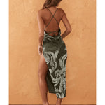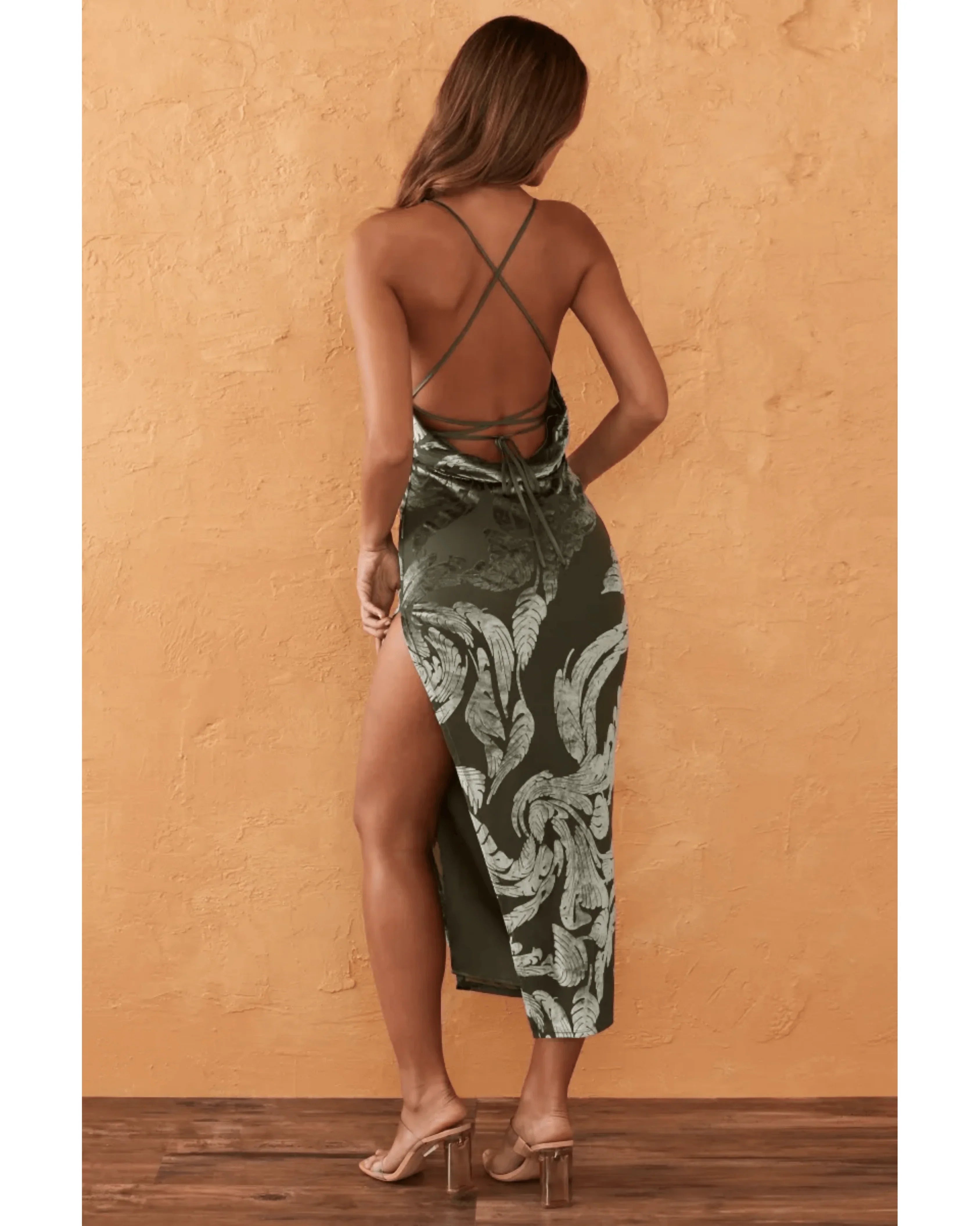 Elevate any occasion with the Backless Cowl Neck Maxi Dress in Olive Print. This stunning dress features a comfortable cowl neck and a flattering backless design, perfect for making a statement. The flowing fabric drapes beautifully, ensuring a graceful silhouette. Ideal for summer soirees, beach weddings, or chic gatherings, this piece combines style with effortless elegance. Embrace versatility and style with a dress that easily transitions from day to night.