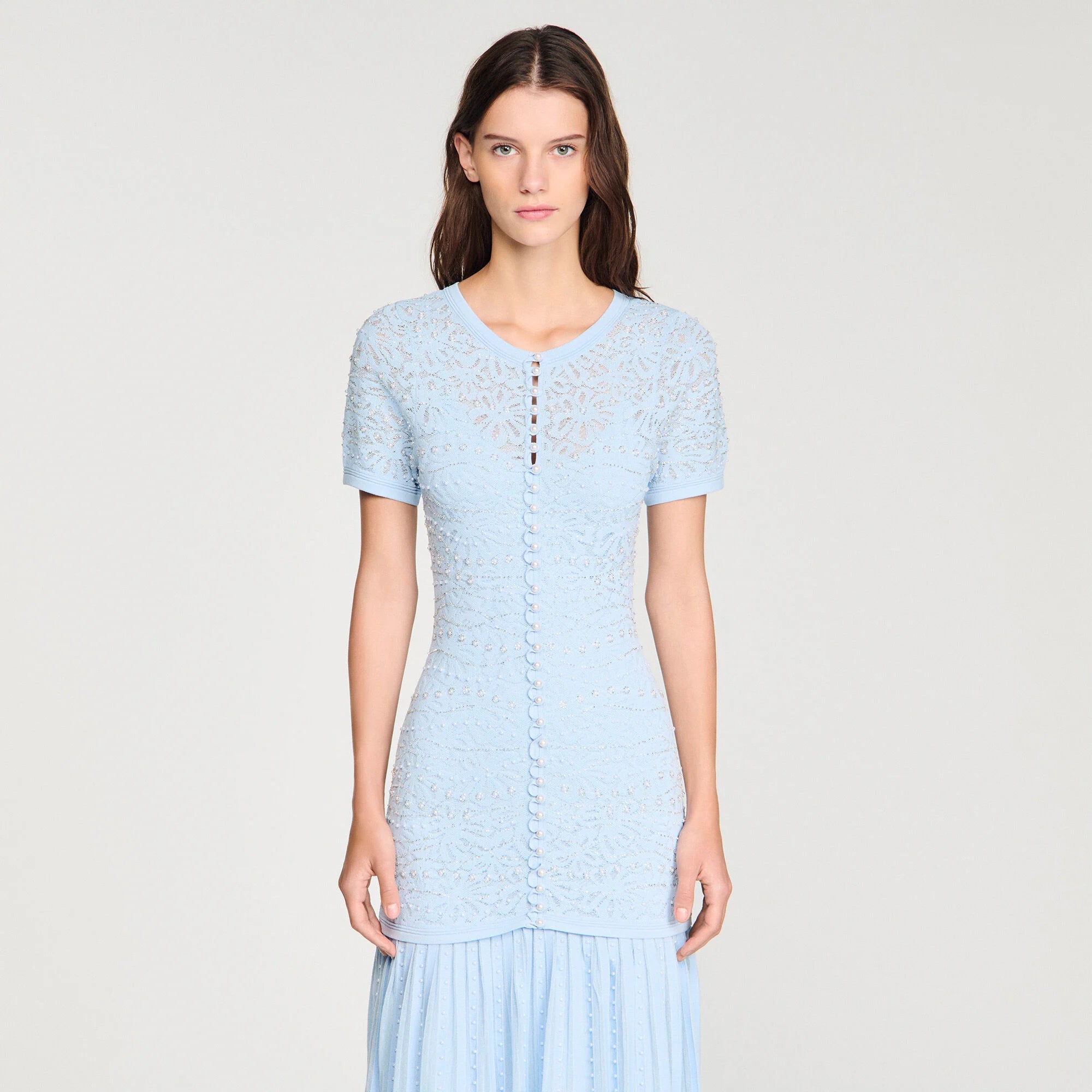 - Front button fastening with pearl buttons