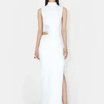 The Beaded Nova dress is primed for special occasions. It has an asymmetric midriff cutout and fun high side slit, decorated with tonal beadwork and spirited fringing.