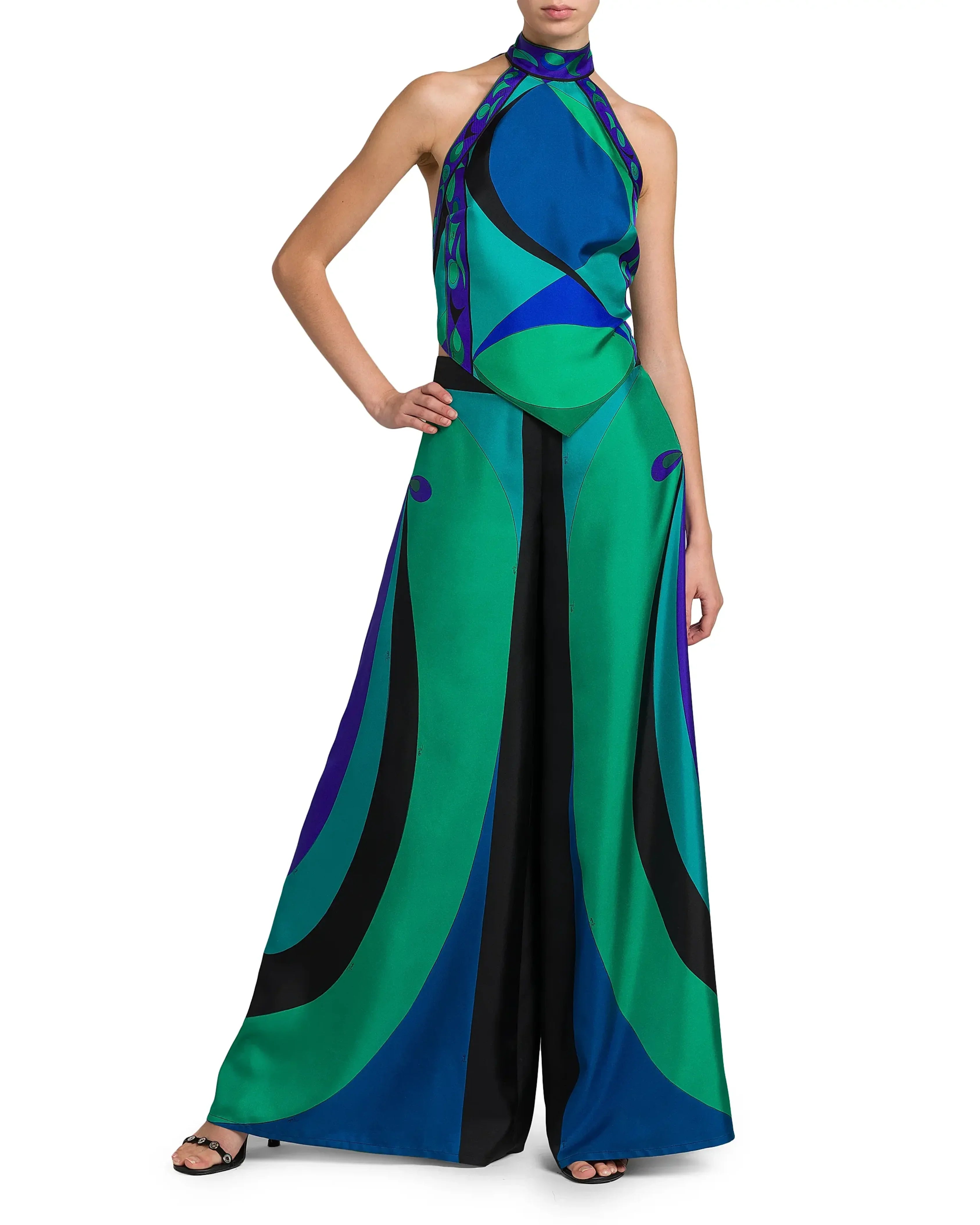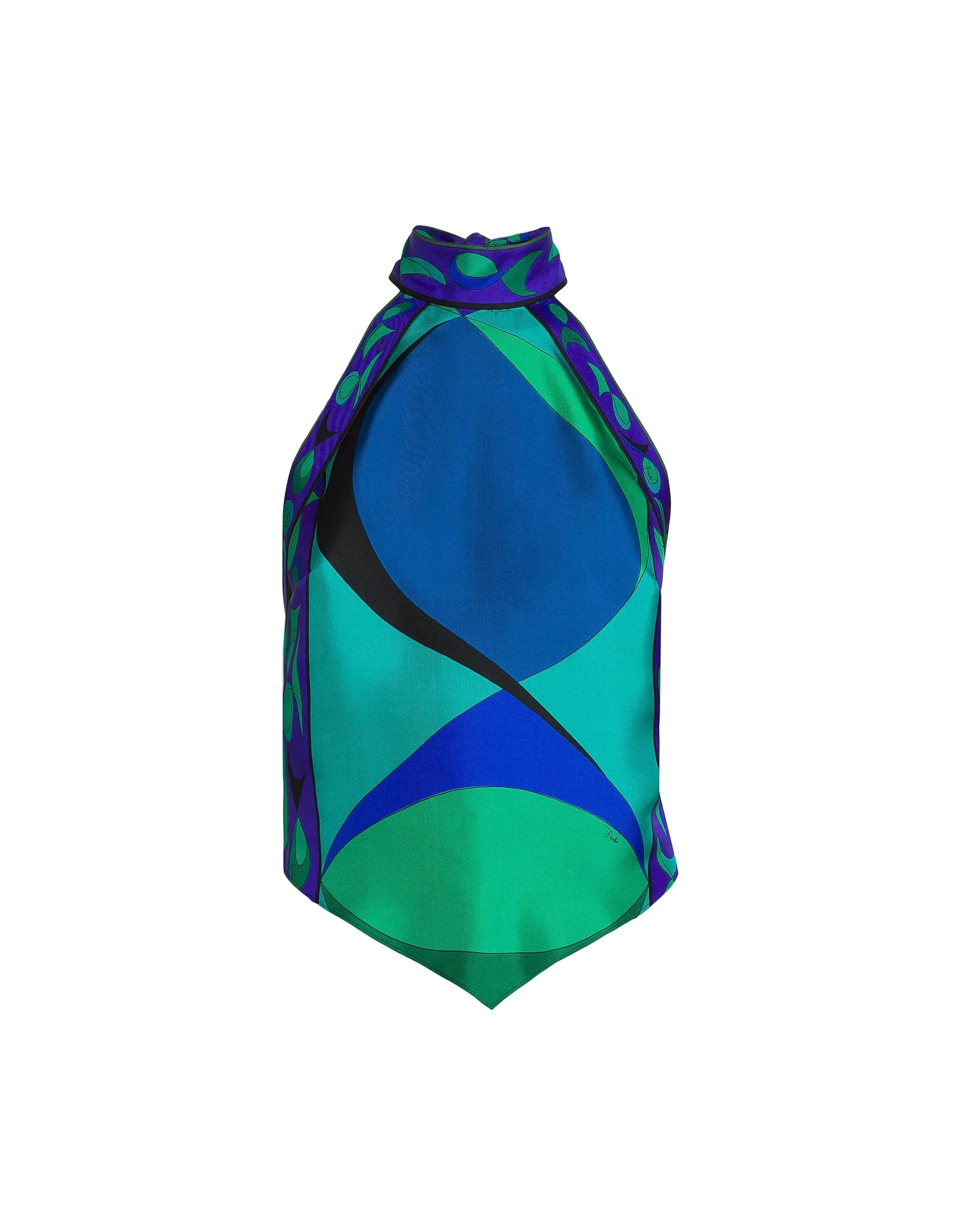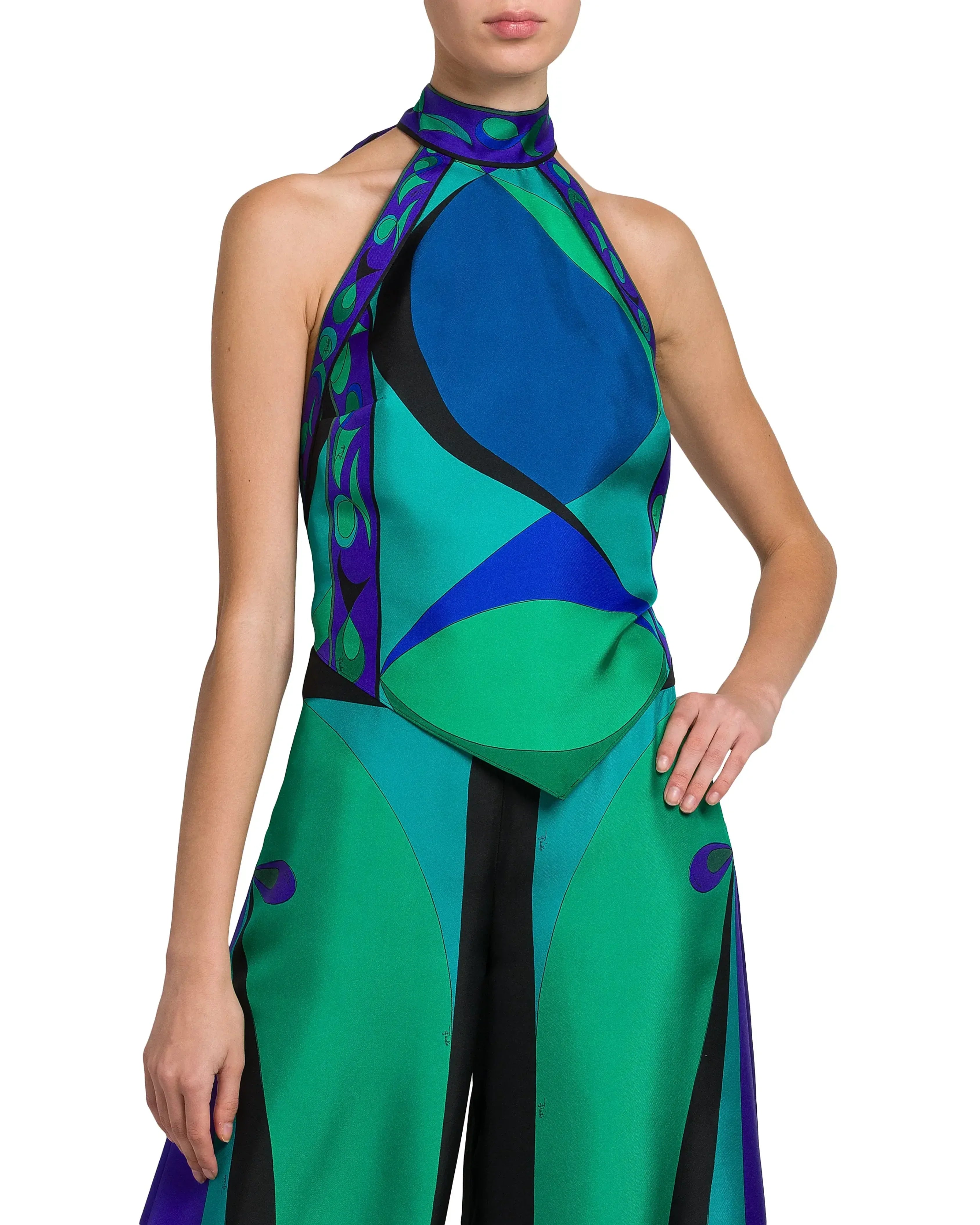 Crafted of silk twill, this halter top from Pucci features a colorblocked design and back tie closure.
