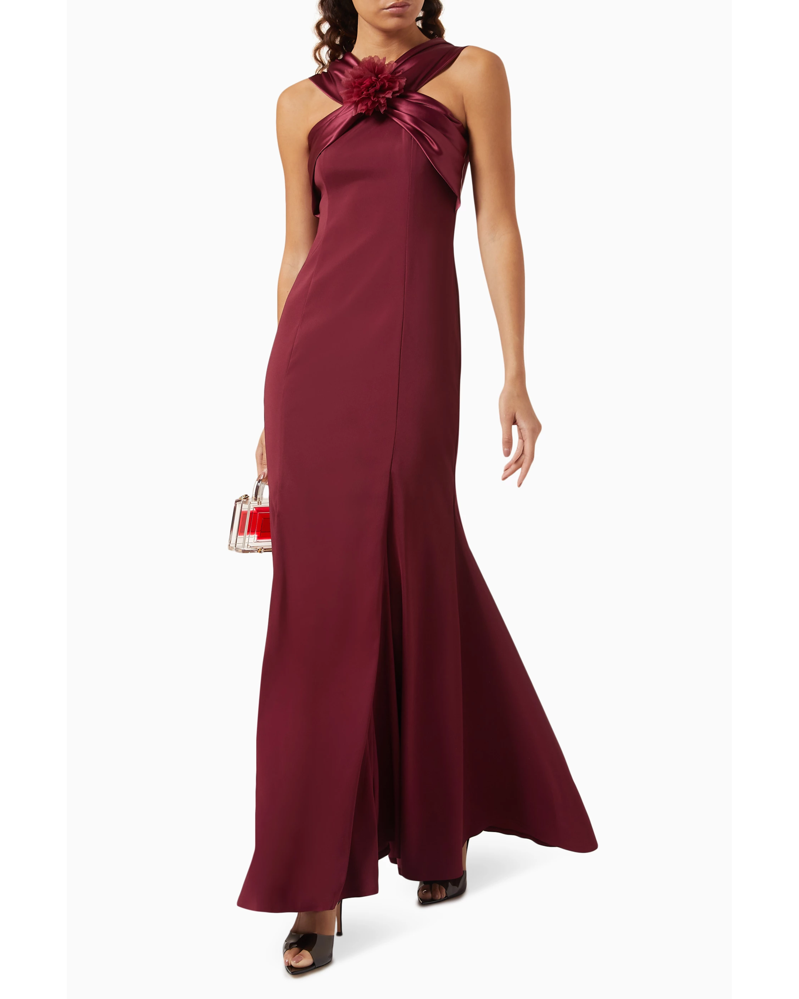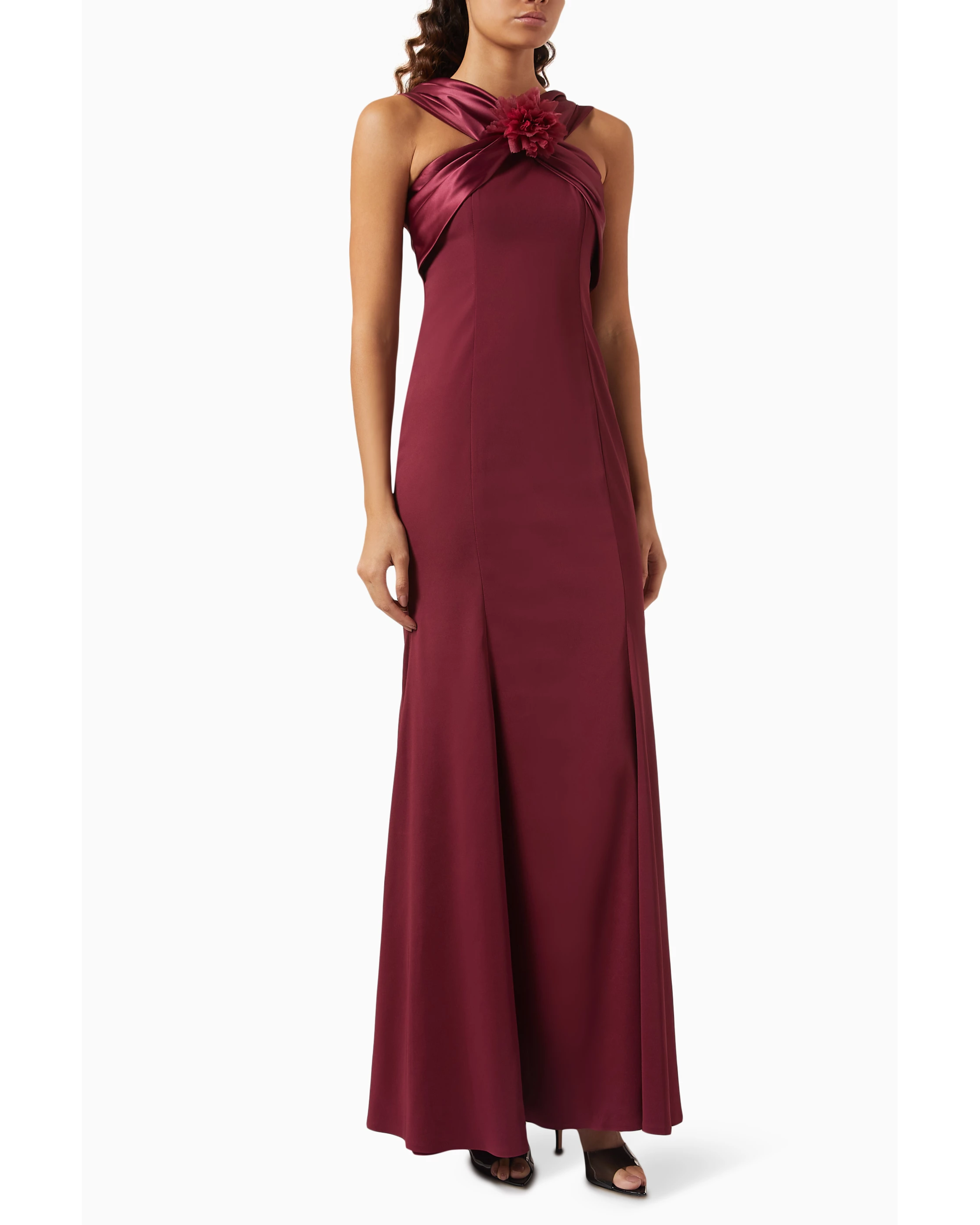 This Amri maxi dress is a statement piece that effortlessly blends romance with contemporary elegance. Crafted from fluid crepe satin, the dress features exquisite floral appliqués that add a whimsical charm. Its flowing silhouette and luxurious fabric make it the perfect choice for special occasions or simply adding a touch of glamour to everyday life.
