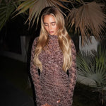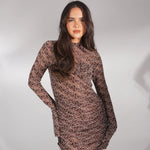 âHarlo' our stretch mini in brown lace featuring slit sleeve and an over bust detailing.