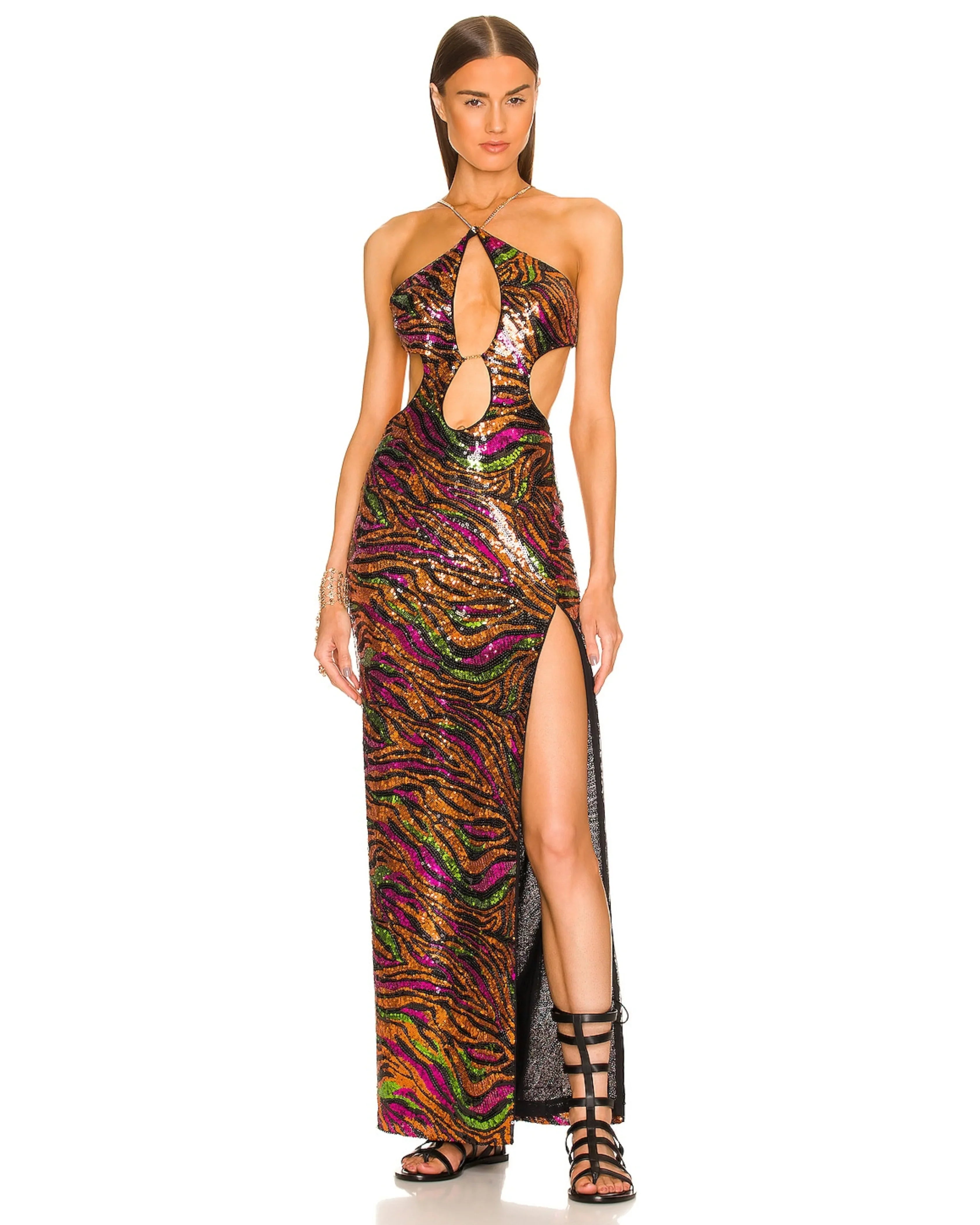 - Gold-tone halterneck chain with adjustable lobster clasp closure.