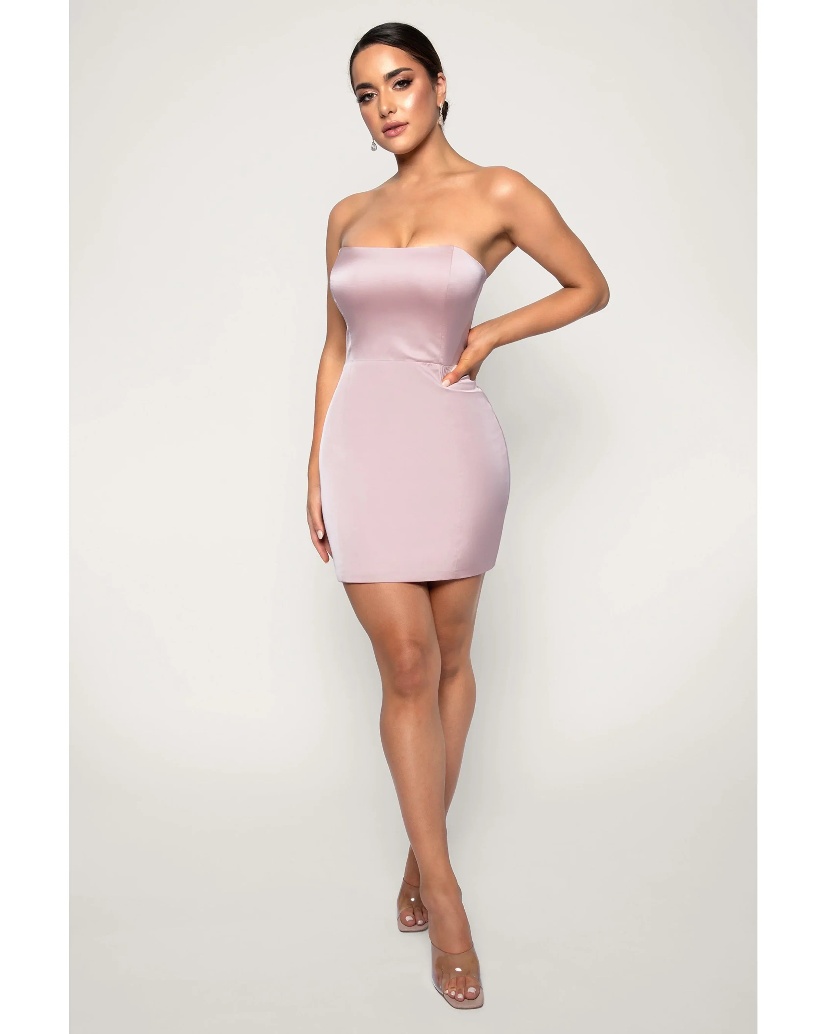 Turn heads in the Kalita Strapless Satin Mini Dress by Meshki a sleek, figure-hugging silhouette crafted from luxe satin. Featuring a clean, strapless neckline and smooth finish, this dress is perfect for your next night out or special occasion. Elegant, minimal, and effortlessly bold.