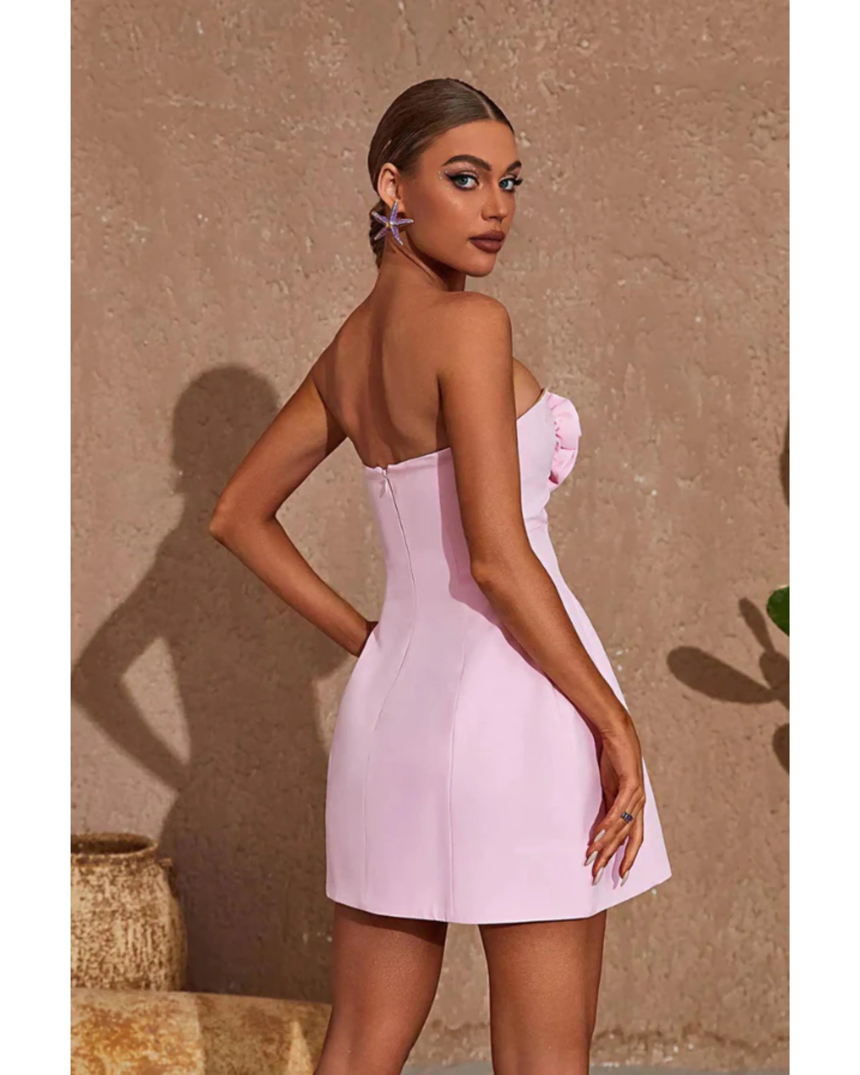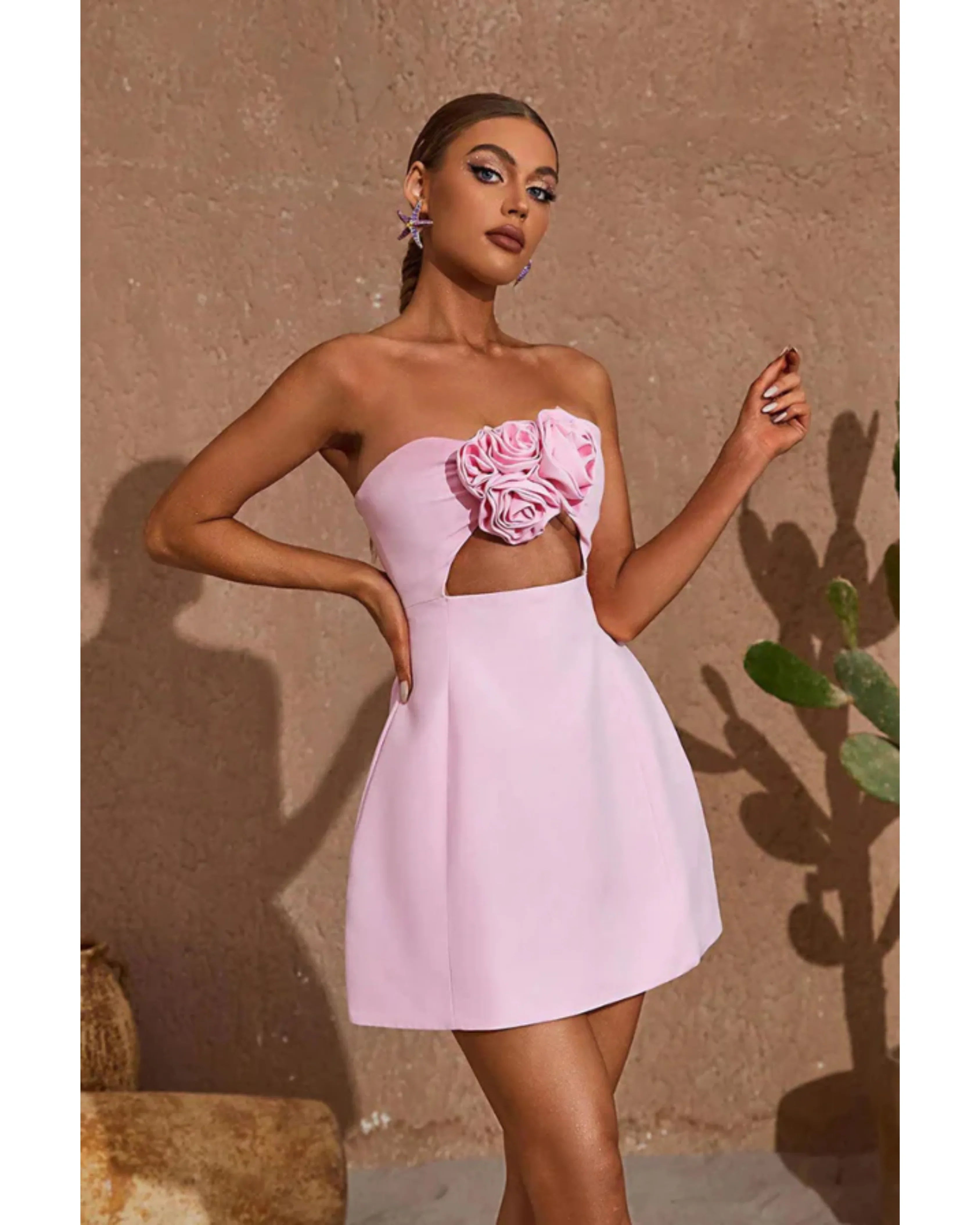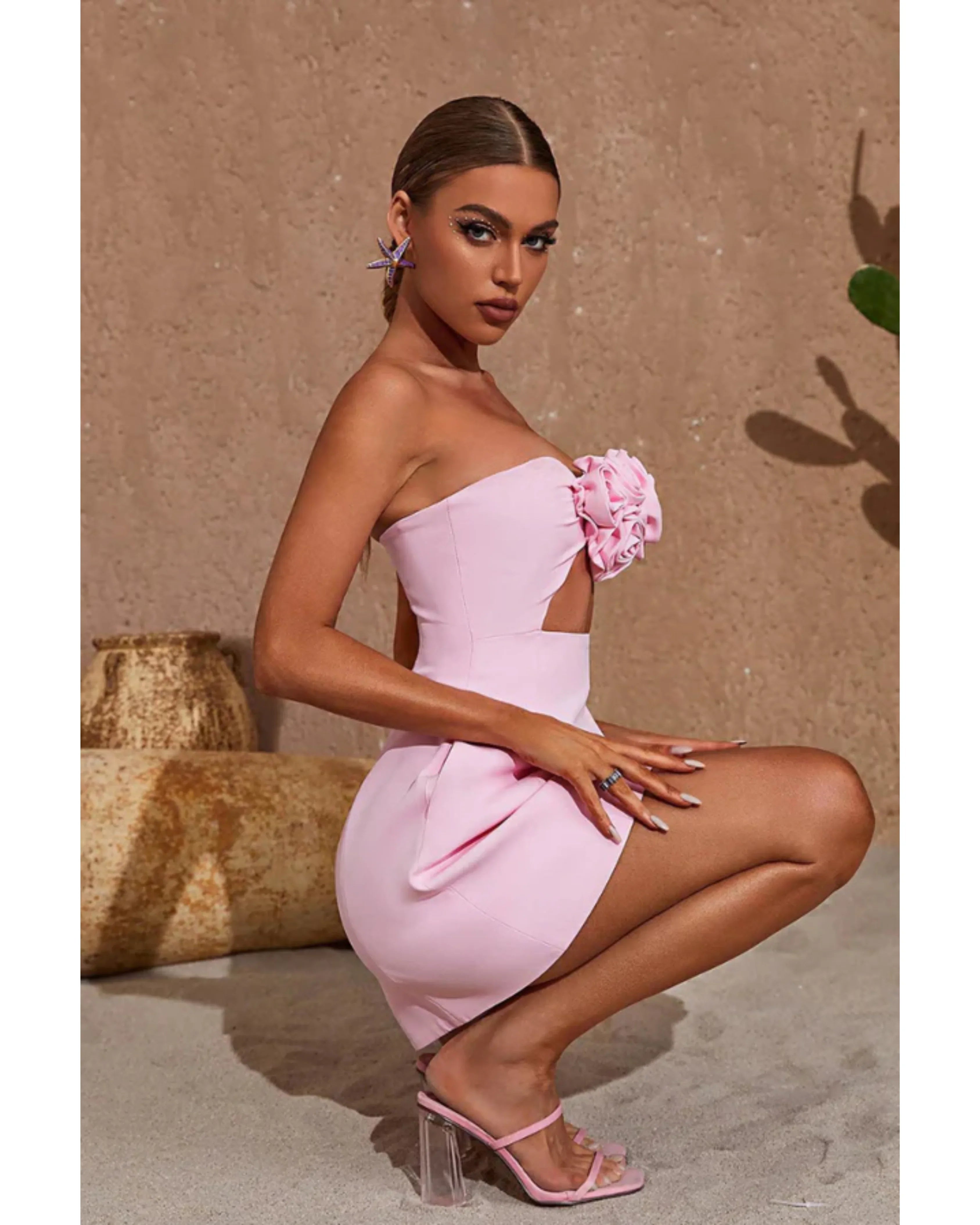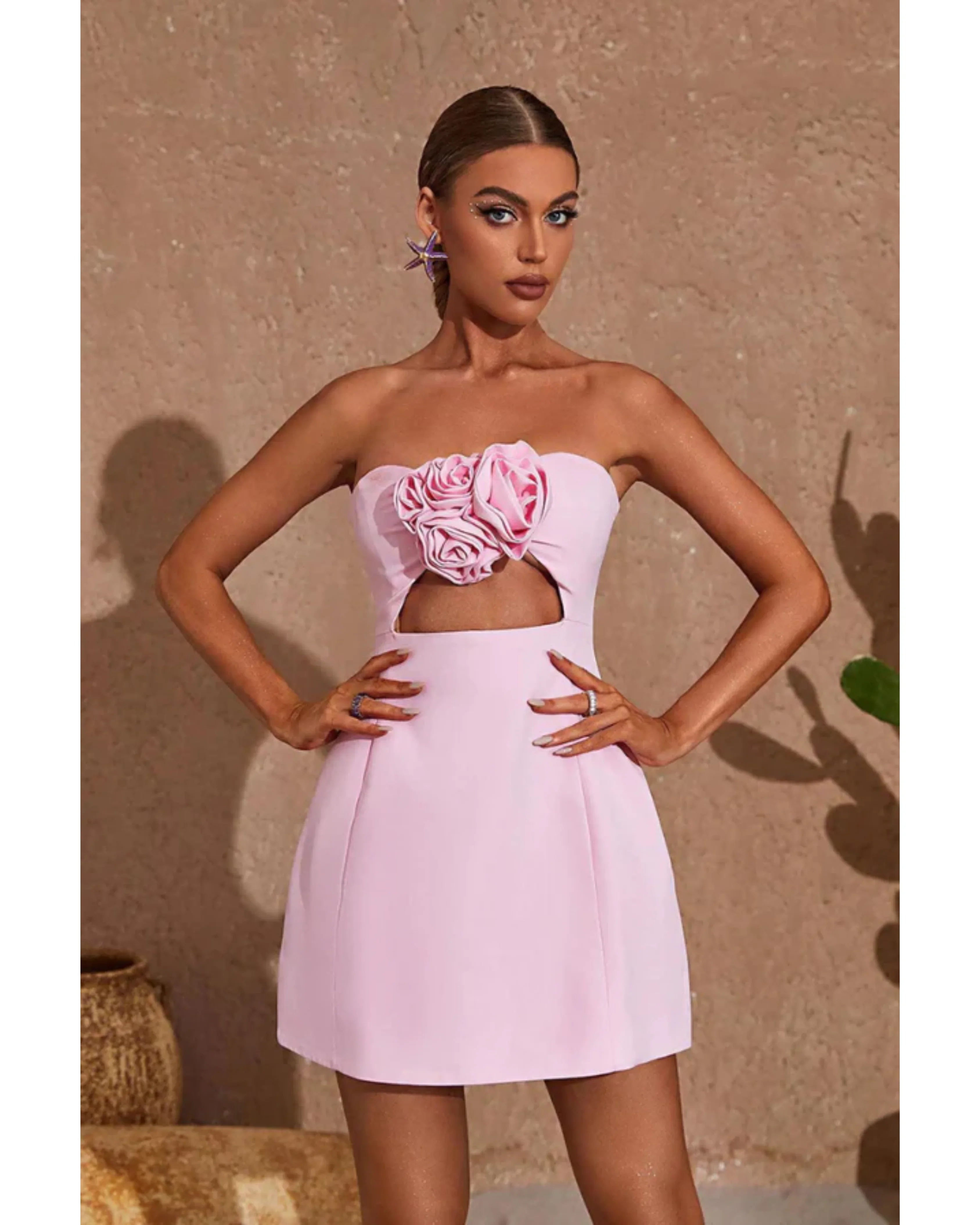 The Kinsley Strapless Cutout Mini Dress is sure to make a stunning statement. Crafted with a strapless design, 3D flower elements, and bold cutouts, this mini dress is perfect for creating a truly unique look. It features a mini length that ensures a flattering fit, while an eye-catching color will make sure you stand out.