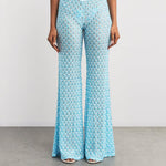These trousers from the Spring/Summer 2025 collection are crocheted to an open construction to enhance the flowy movement of the flared shape.