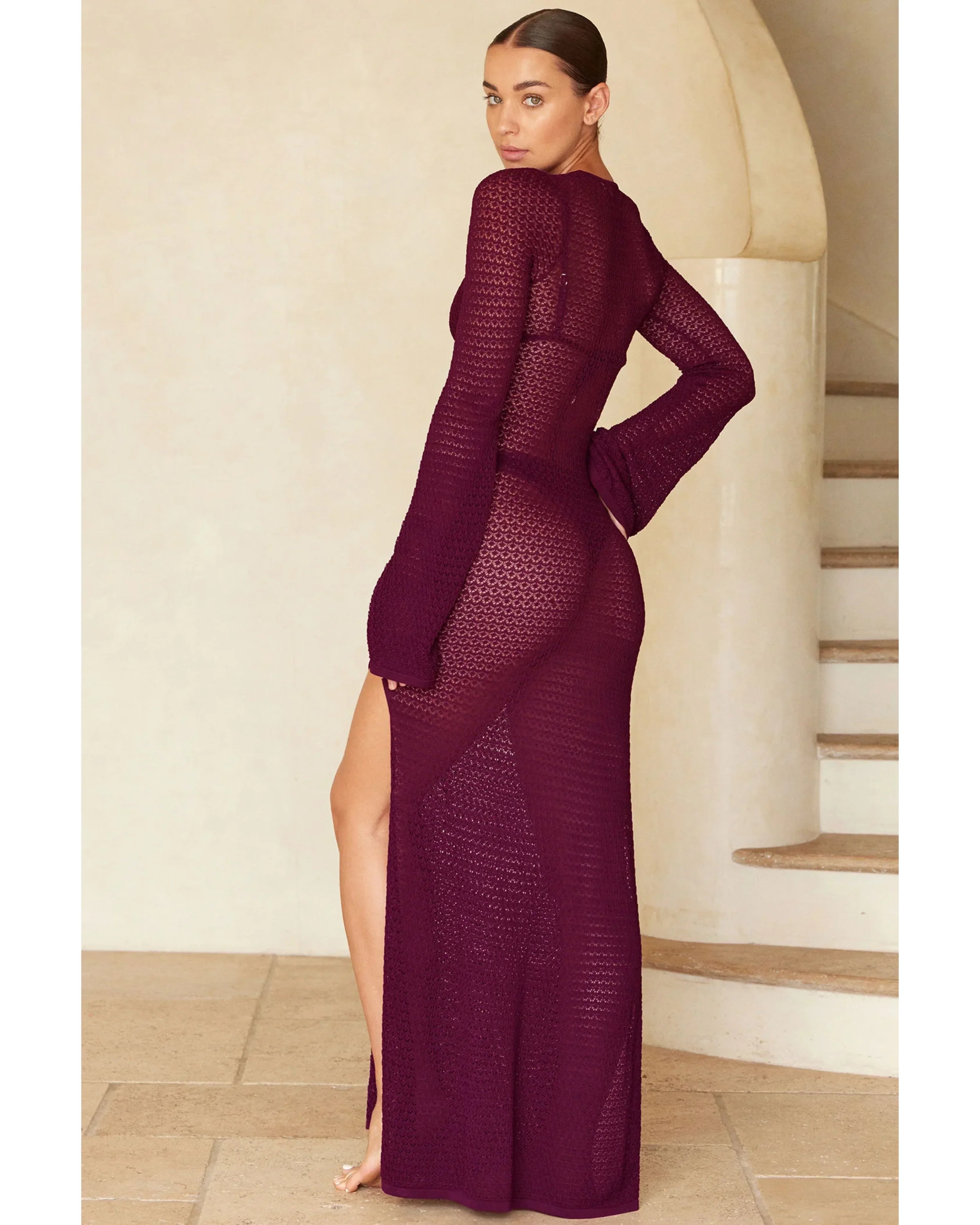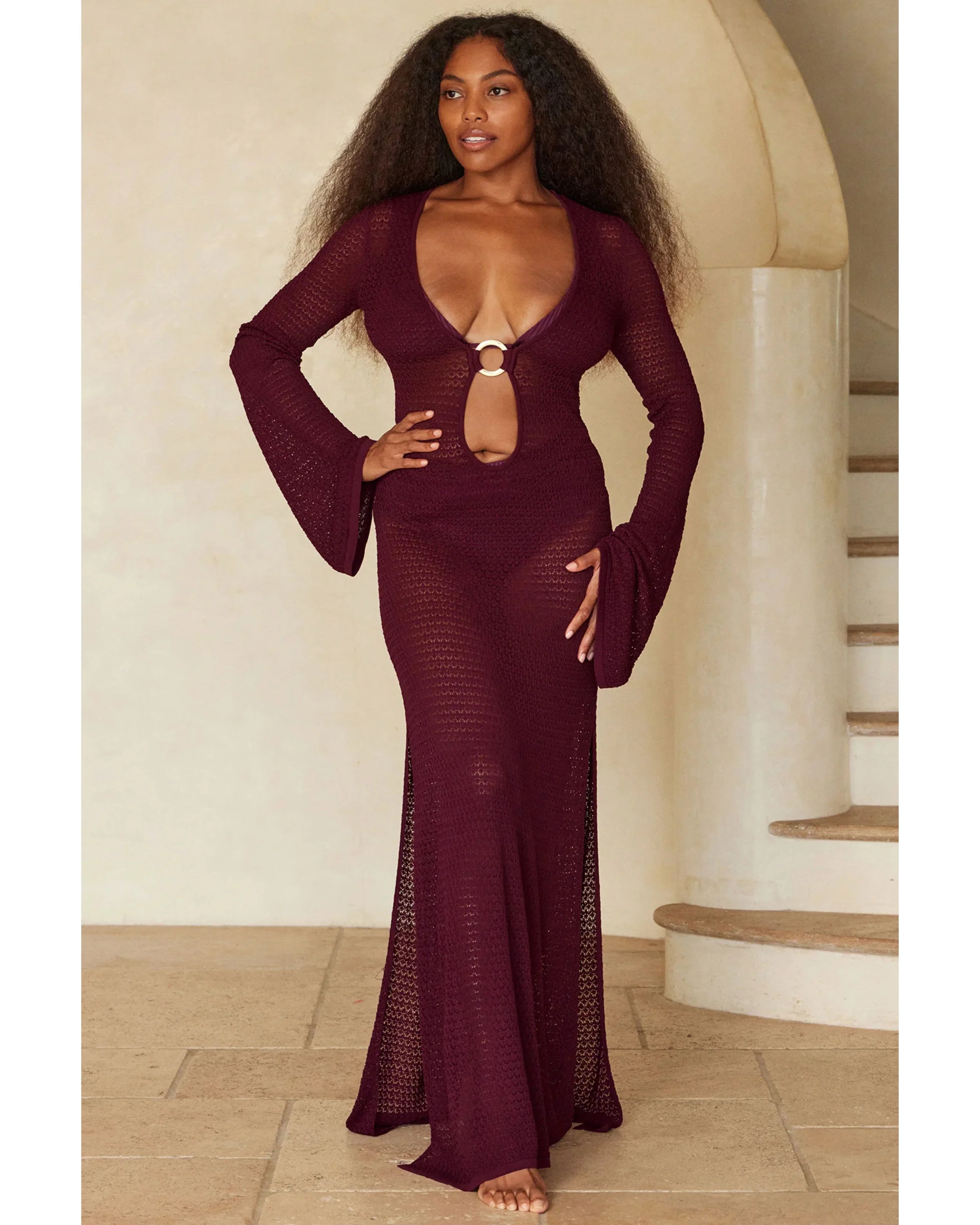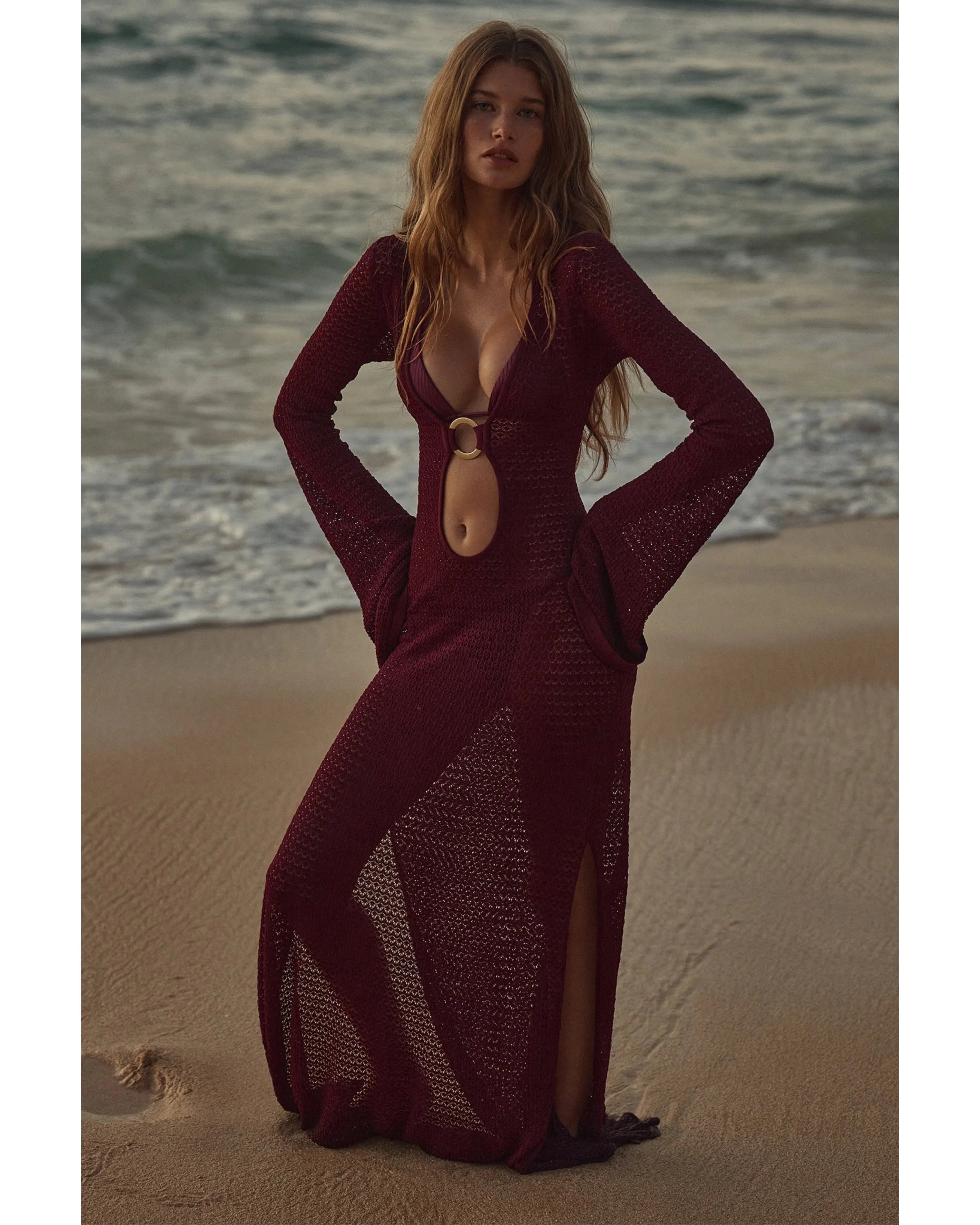 Glamorous and chic! This Montego Dress will make you feel like a star. Made in a lurex crochet knit, this elegant dress with a plunging neckline, gold ring detailing and high side seam slits will make you brighten up any room you walk in. Paired with any of our swim, this dress will elevate any beach look!