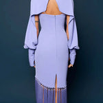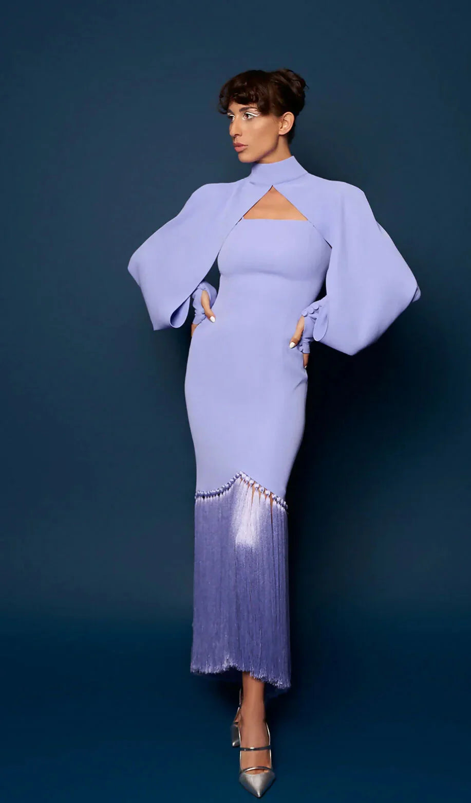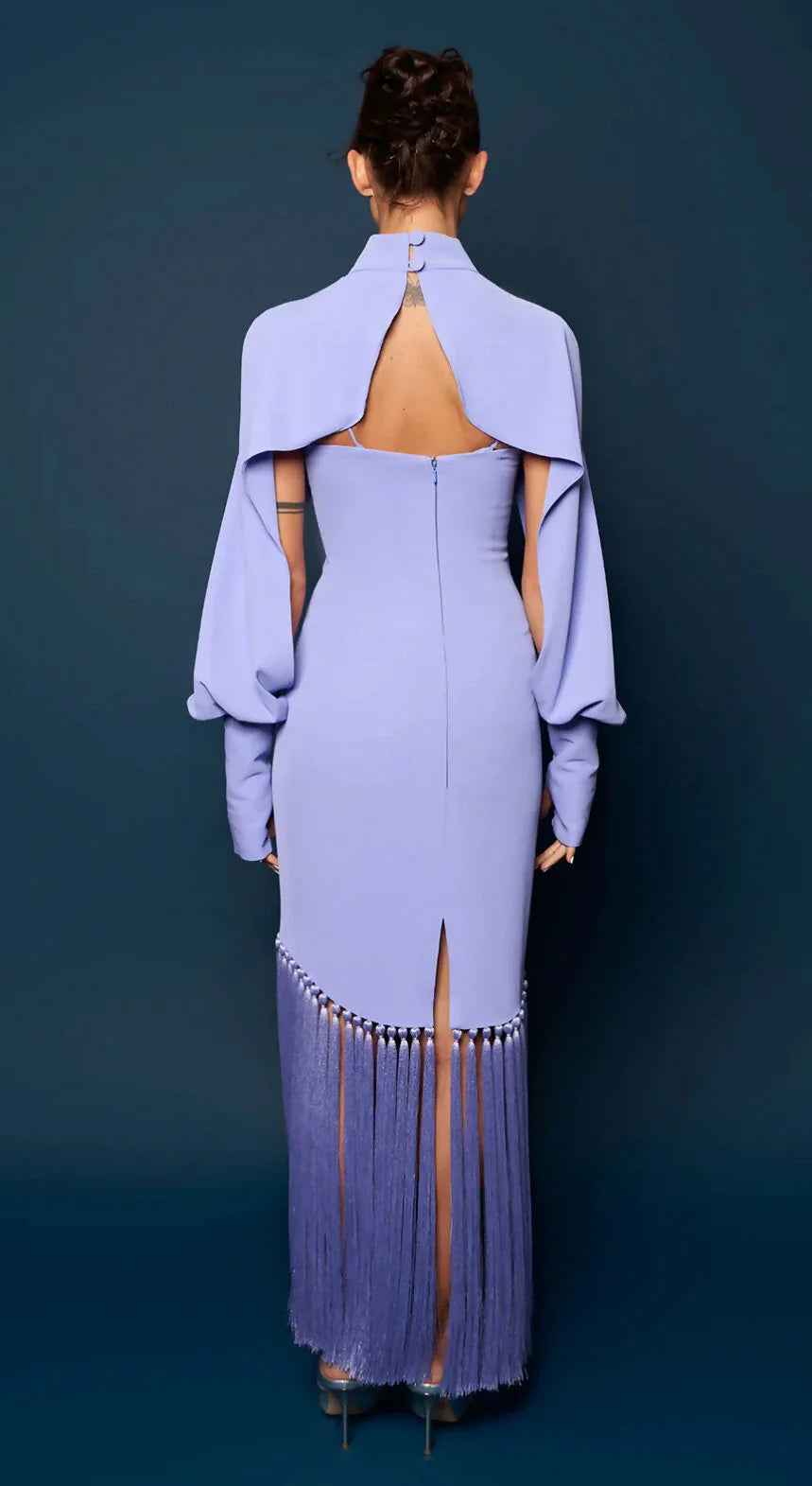Nour Abdul Lilac Cape Sleeve Fringe Gown