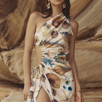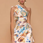 The Nour mini dress features an elegant one-shoulder neckline, high split and a minimalist silhouette, that’s artfully adorned with fabric play and cutout which taper in at the waist. The adjustable cutout hugs the body in all the right places, forming the most beautiful ruching details to showcase an extremely feminine shape.