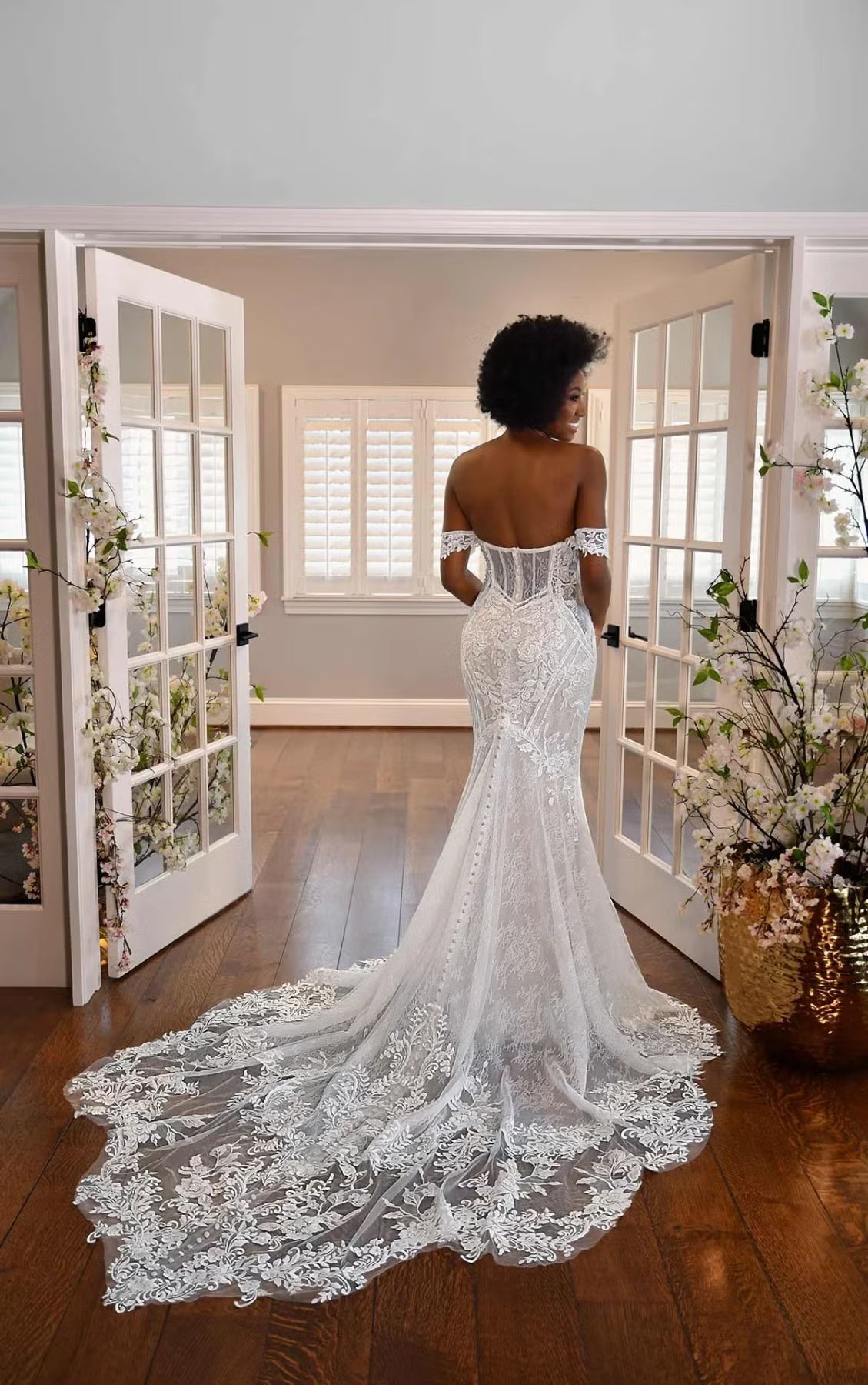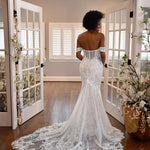 Off-The-Shoulder Lace Fit-And-Flare Wedding Dress