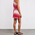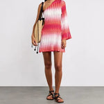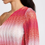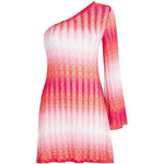 This mini dress demonstrates that retro flair; with a one-shoulder neckline and a singular flared sleeve, it comes to life via signature sunset-hued zigzags.