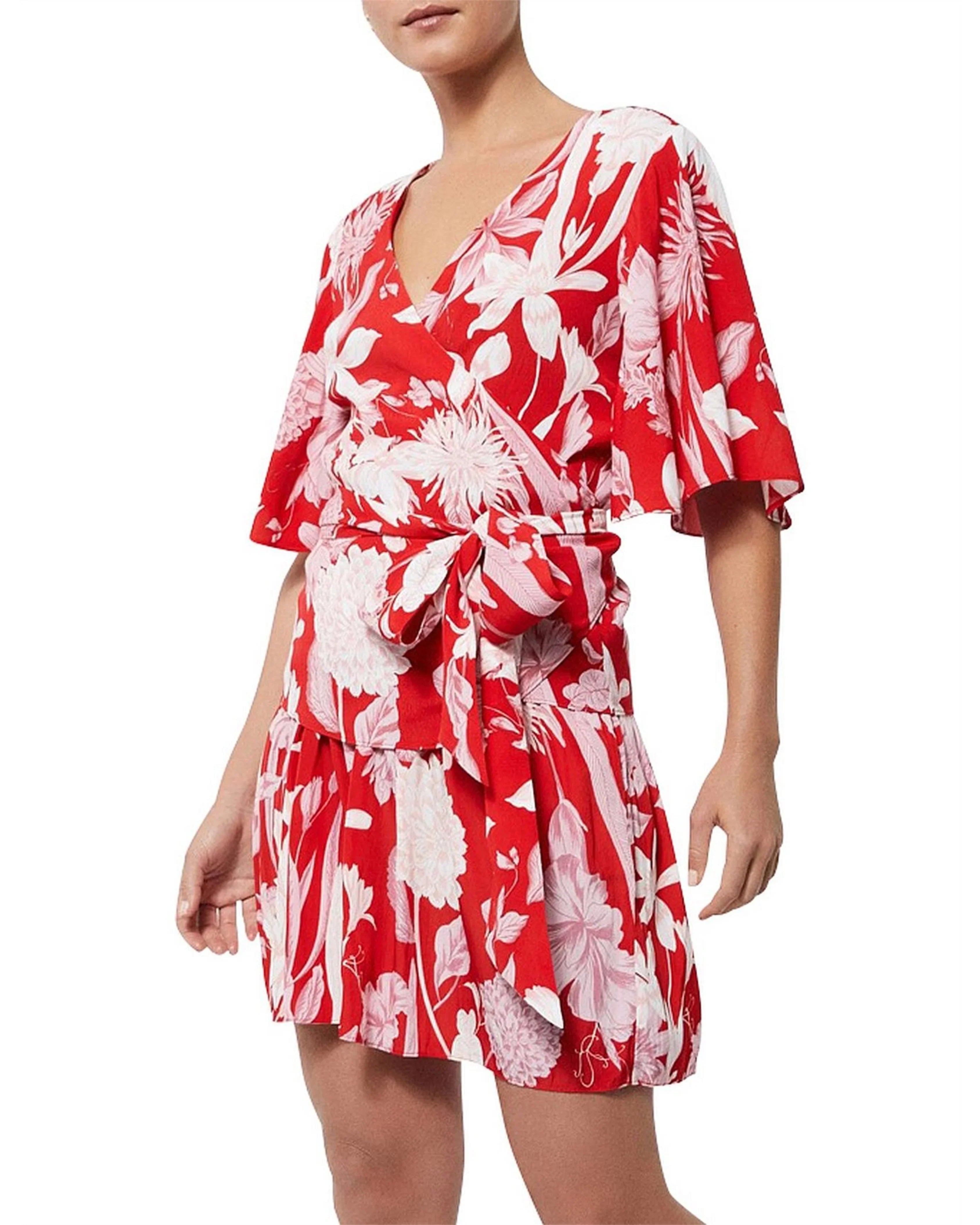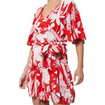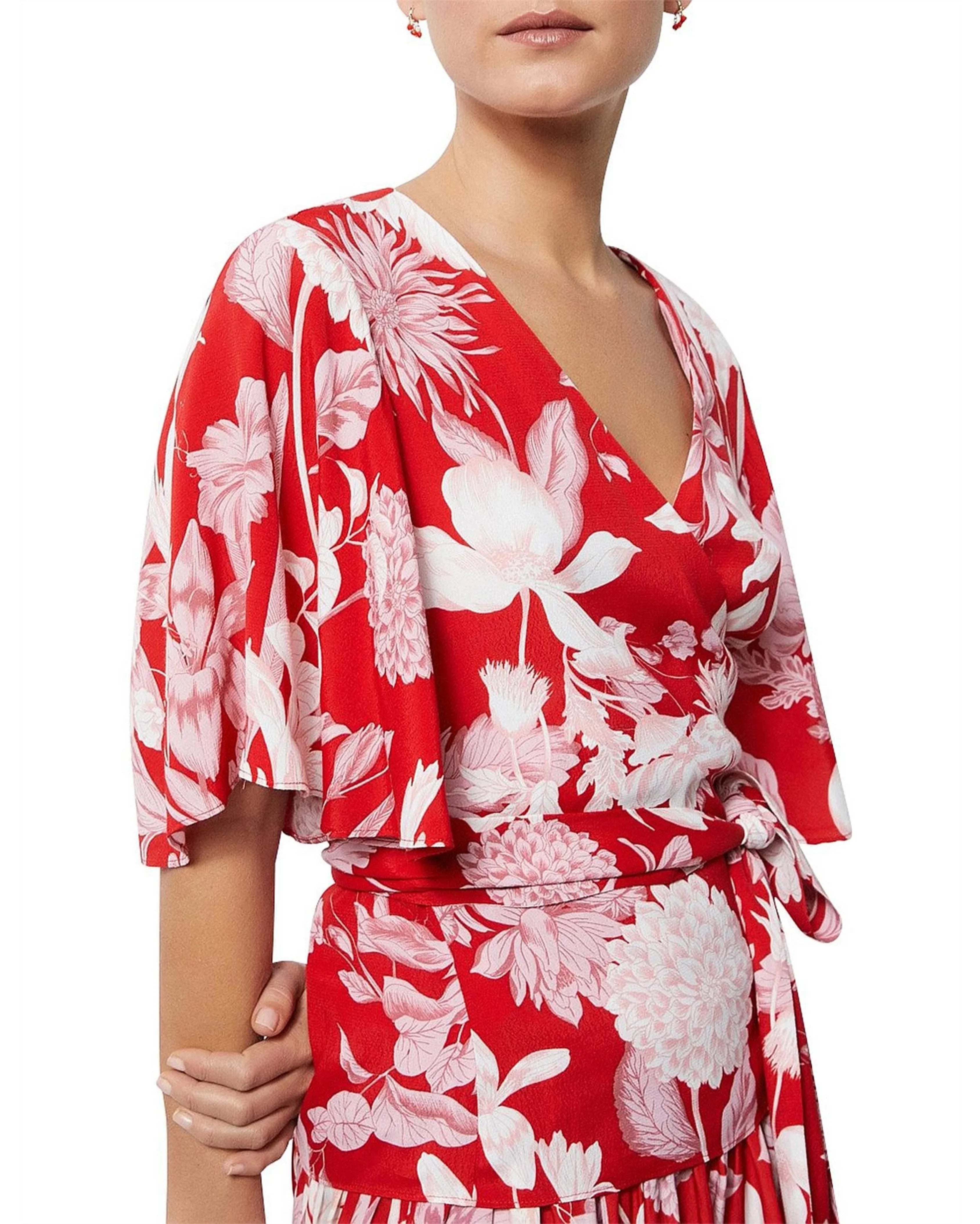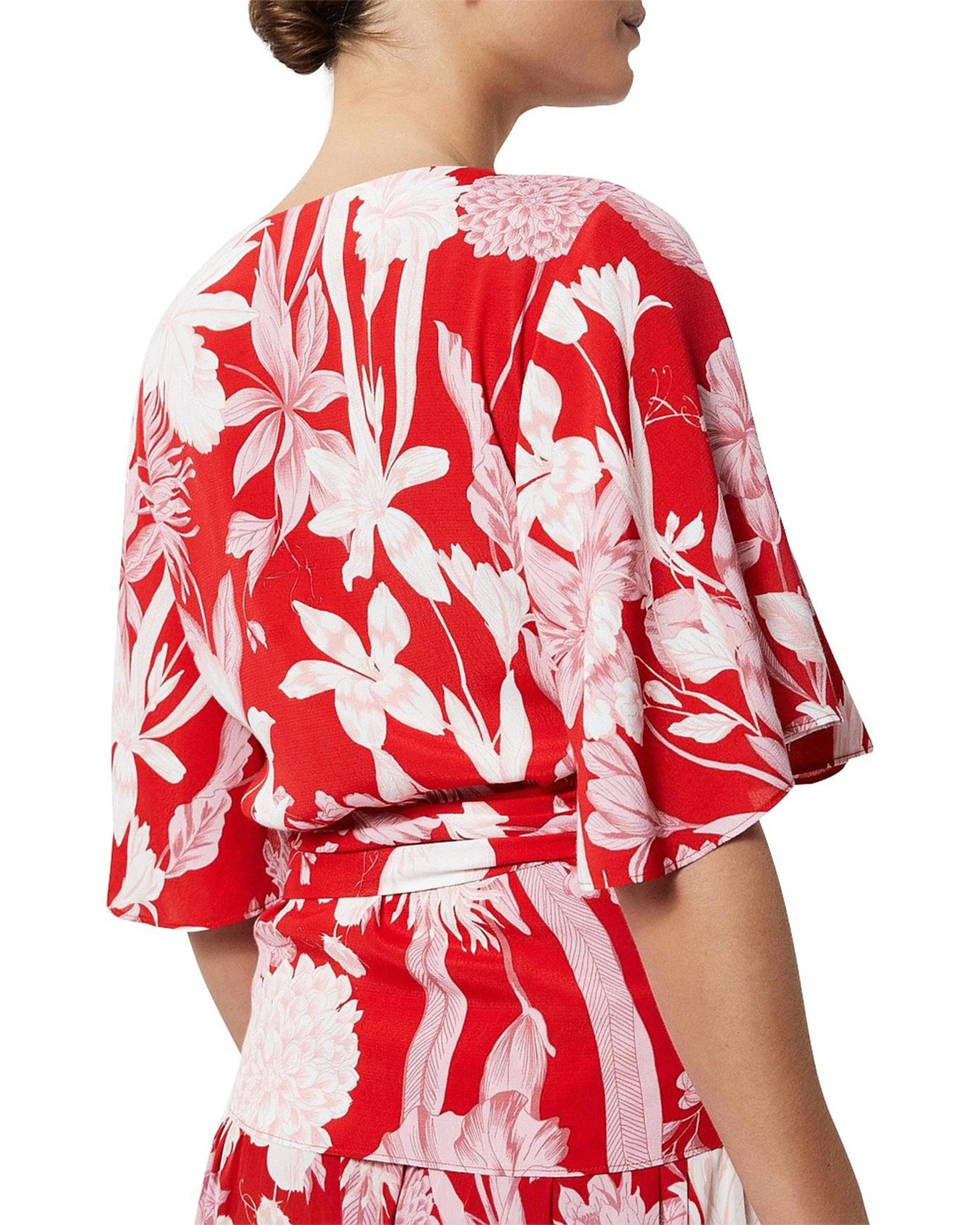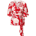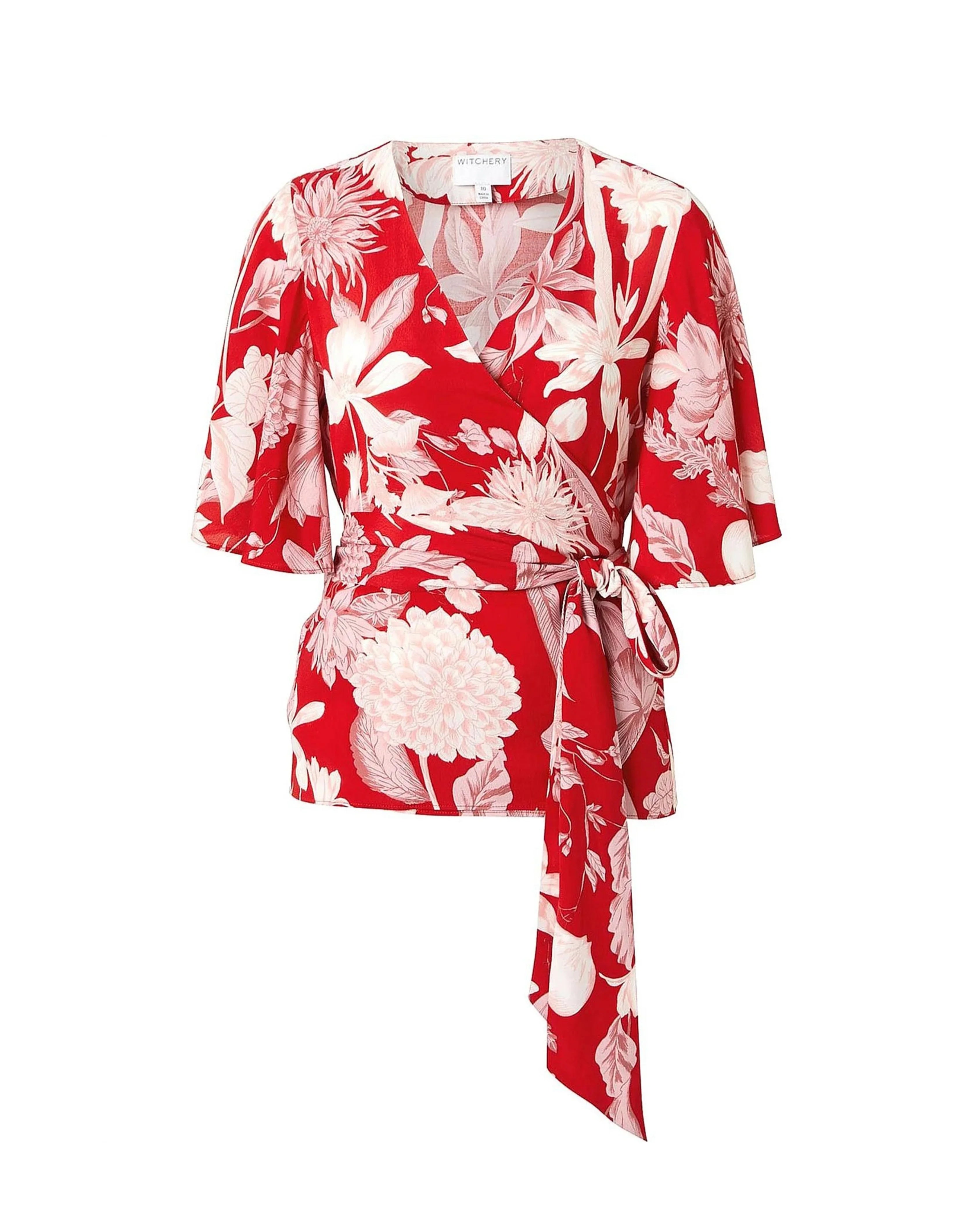 WITCHERY FLORAL WRAP SHIRT IN RED EXOTIC THEMESOFT AND LIGHTWEIGHT MATERIAL, PERFECT FOR THE HOLIDAYS