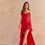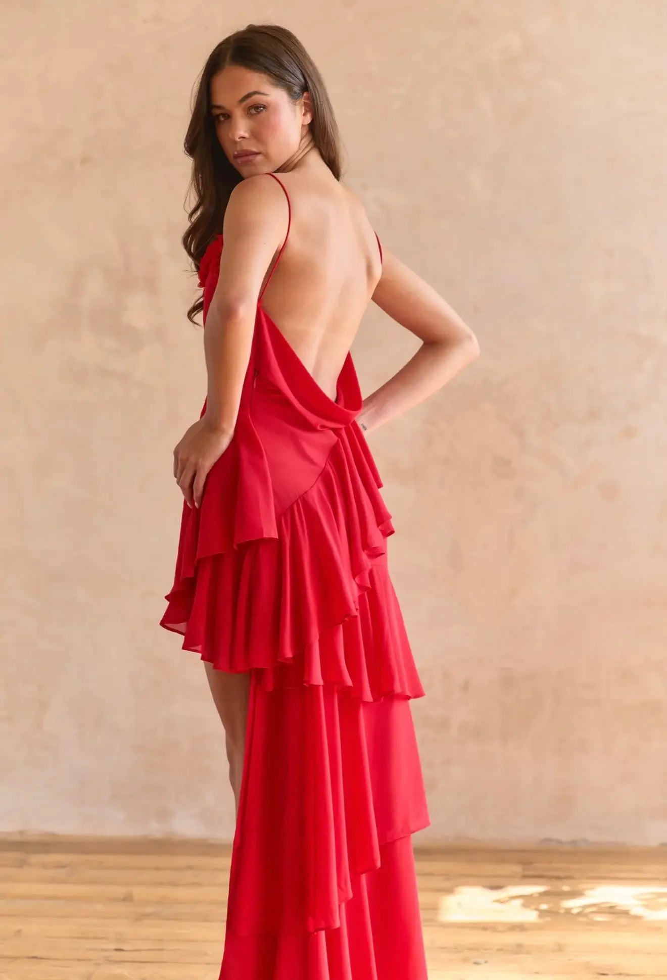 The deep V neckline is beautifully framed with hand made rose petals that trail down the front. A soft lace trim nods to classic romance while keeping things modern. Fully lined with a concealed side zip, it feels as good as it looks – sleek, comfortable, and undeniably luxurious.