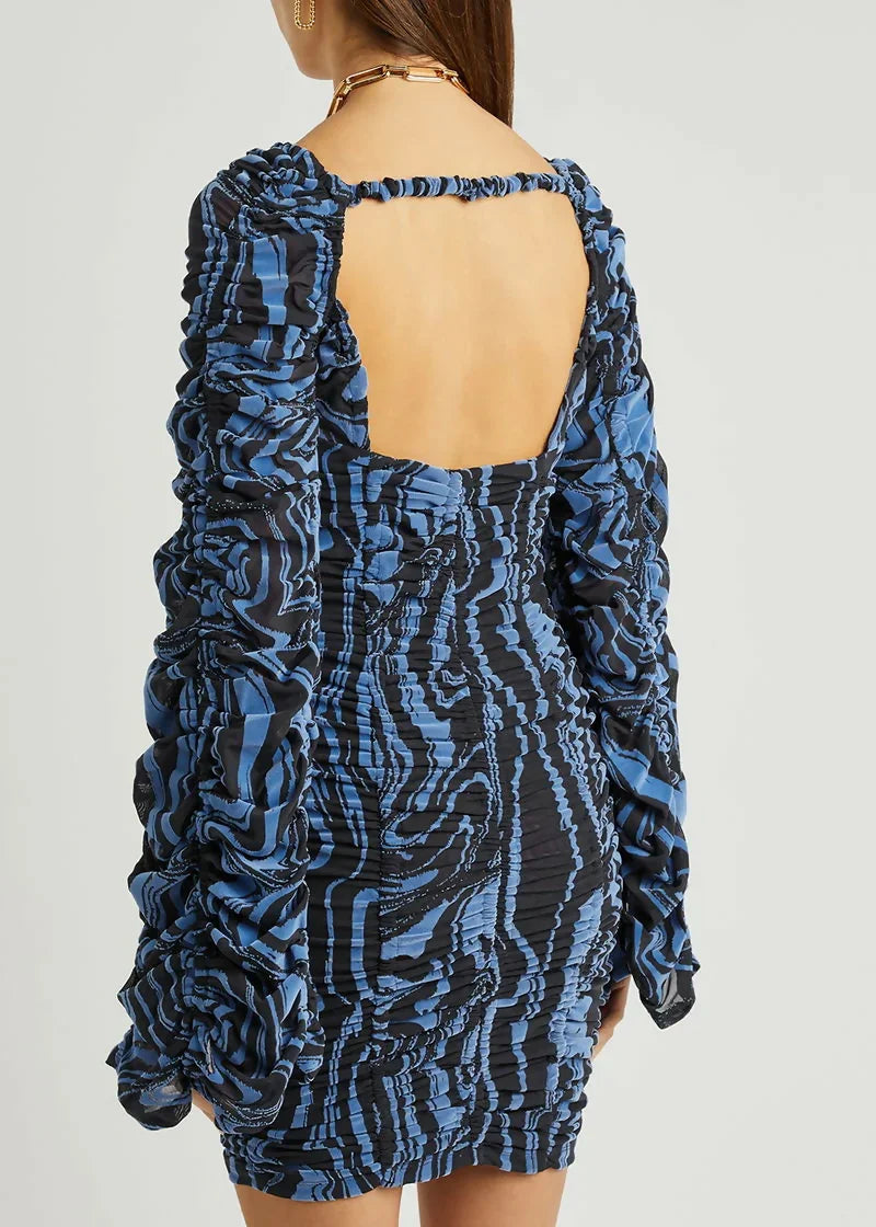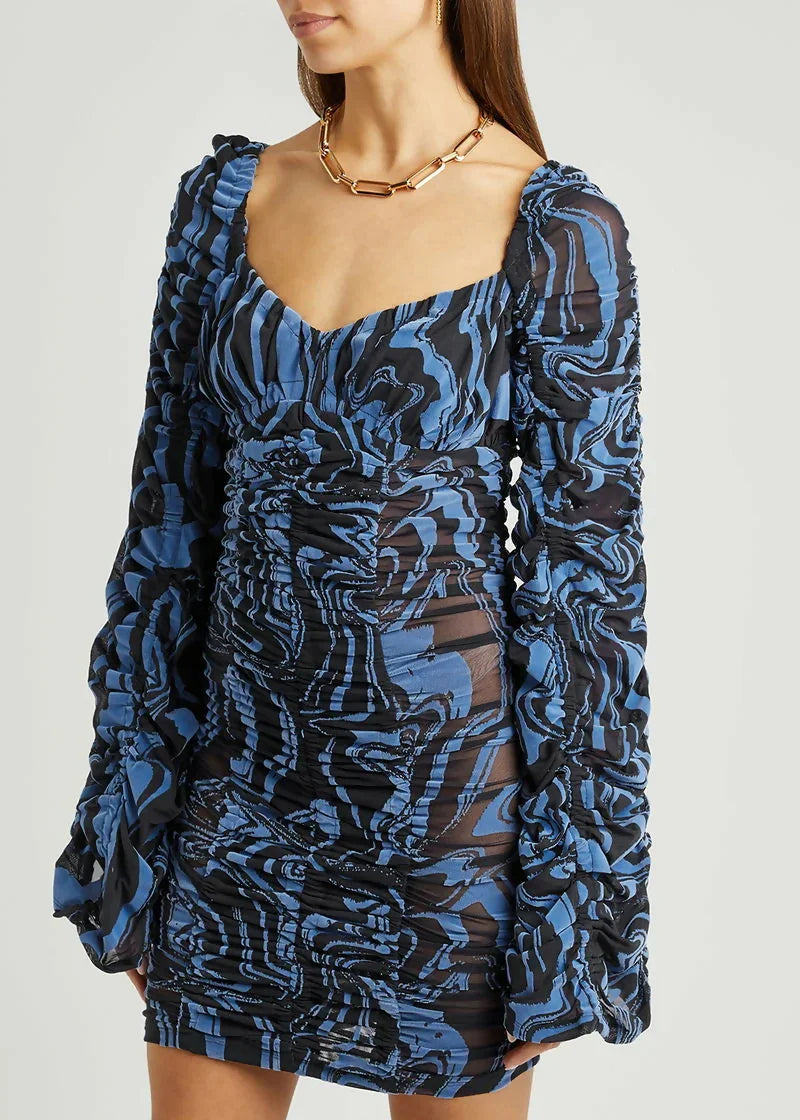 Rikke Marble-Print Stretch-Tulle Mini Dress