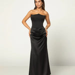 The 'Rosalind' is all out, divine feminine glamour, and we make no apologies for it. This staple Almond Muse style showcases our signature corsetry and refined shaping like no other. The boned bodice is crafted from a stretch crepe that lifts and cinches in all the right places. It fastens with an easy zip at the back.