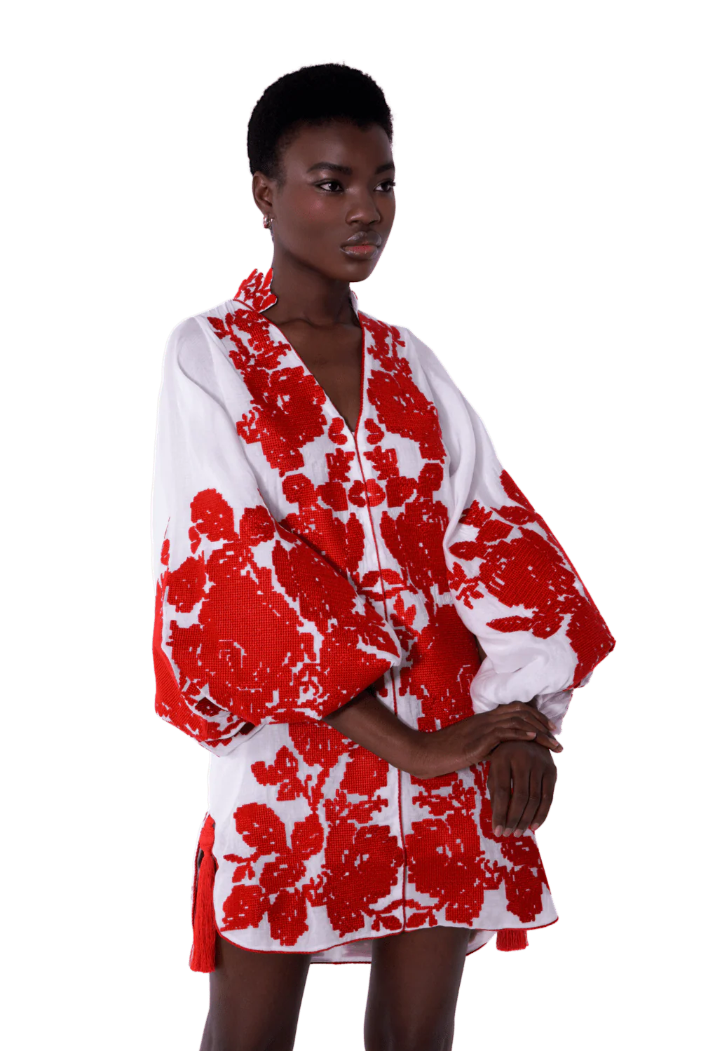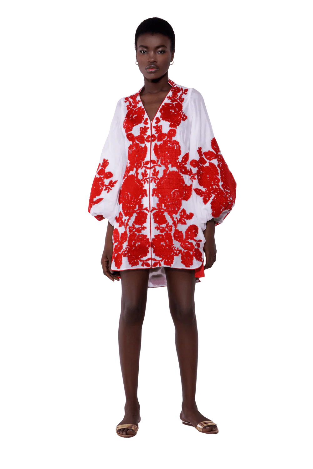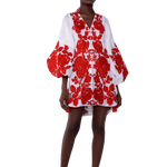 Roses Fully Embroidered Batiste Caftan Mini