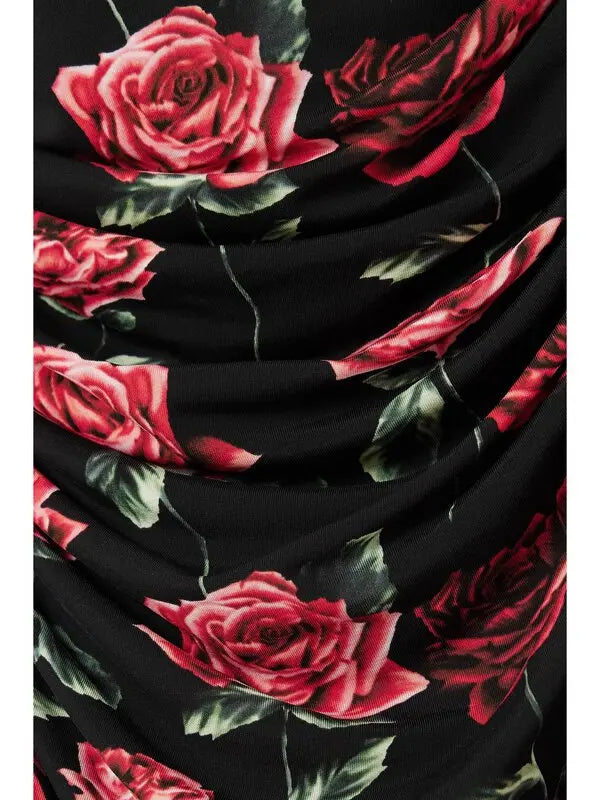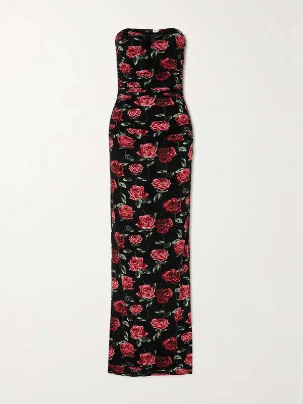 Ruched Floral-print Stretch-jersey Bustier Gown