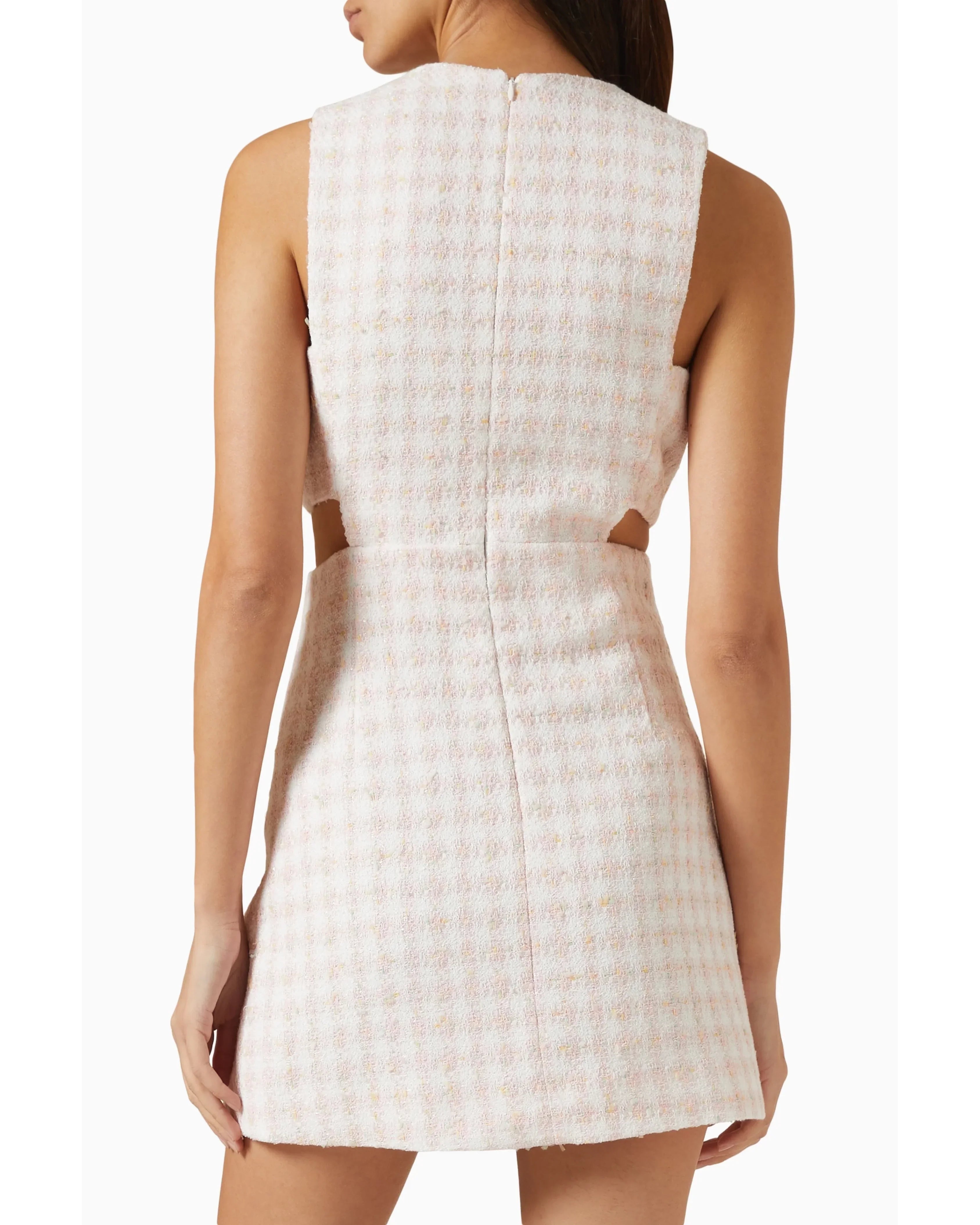 Silhouette: Slim-fit mini dress that elegantly skims the body while flattering your natural shape. Neckline & Details: Stylish cutout design with subtle button accents adds a modern, sophisticated edge. Comfort: Made from soft, high-quality tweed with full lining, the dress is very comfortable to wear while maintaining its structured, polished look. Chic Factor: Effortlessly stylish designed to make you look chic and put-together for any occasion. Length: Mini-length for a playful, elegant vibe. True to Size: Fits true to size; consider your usual size for the best fit.