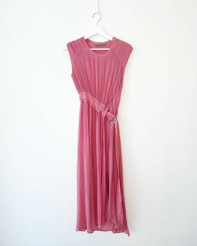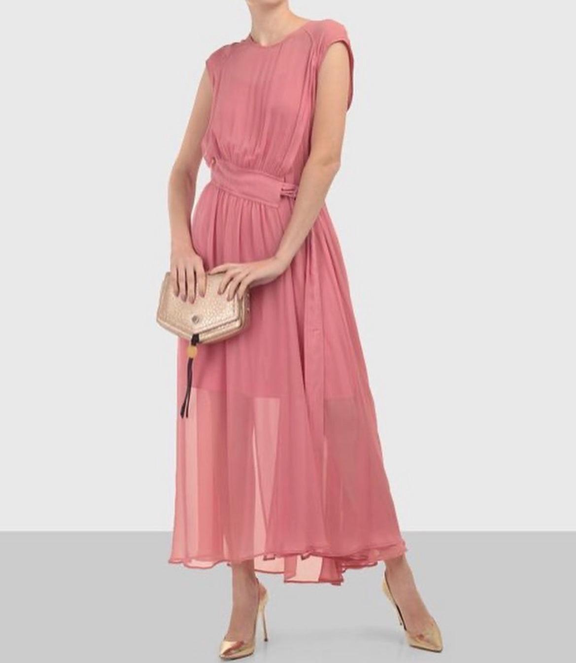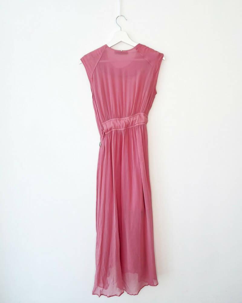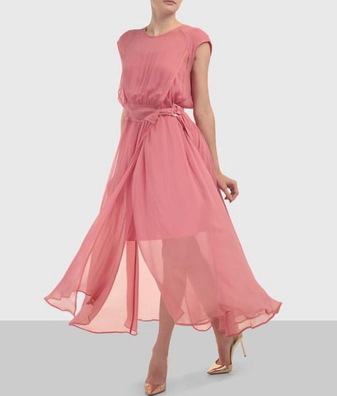 Crafted from luxurious silk, this maxi dress with slip comes in a lovely Rose Pink hue.