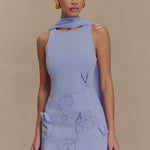 The SKYLER Suiting Embroidered Mini Dress is where structured suiting meets delicate detailing. Designed with a classic crew neckline and mini length, this refined silhouette is elevated by a corded floral embroidery that adds texture and charm. Fully lined for comfort and finished with an invisible zip, this dress also features a detachable neck scarf for added styling versatility. It's your go-to for daytime polish or elevated events.