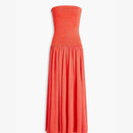 Tomato red ZIMMERMANN drop waist knit strapless dress.