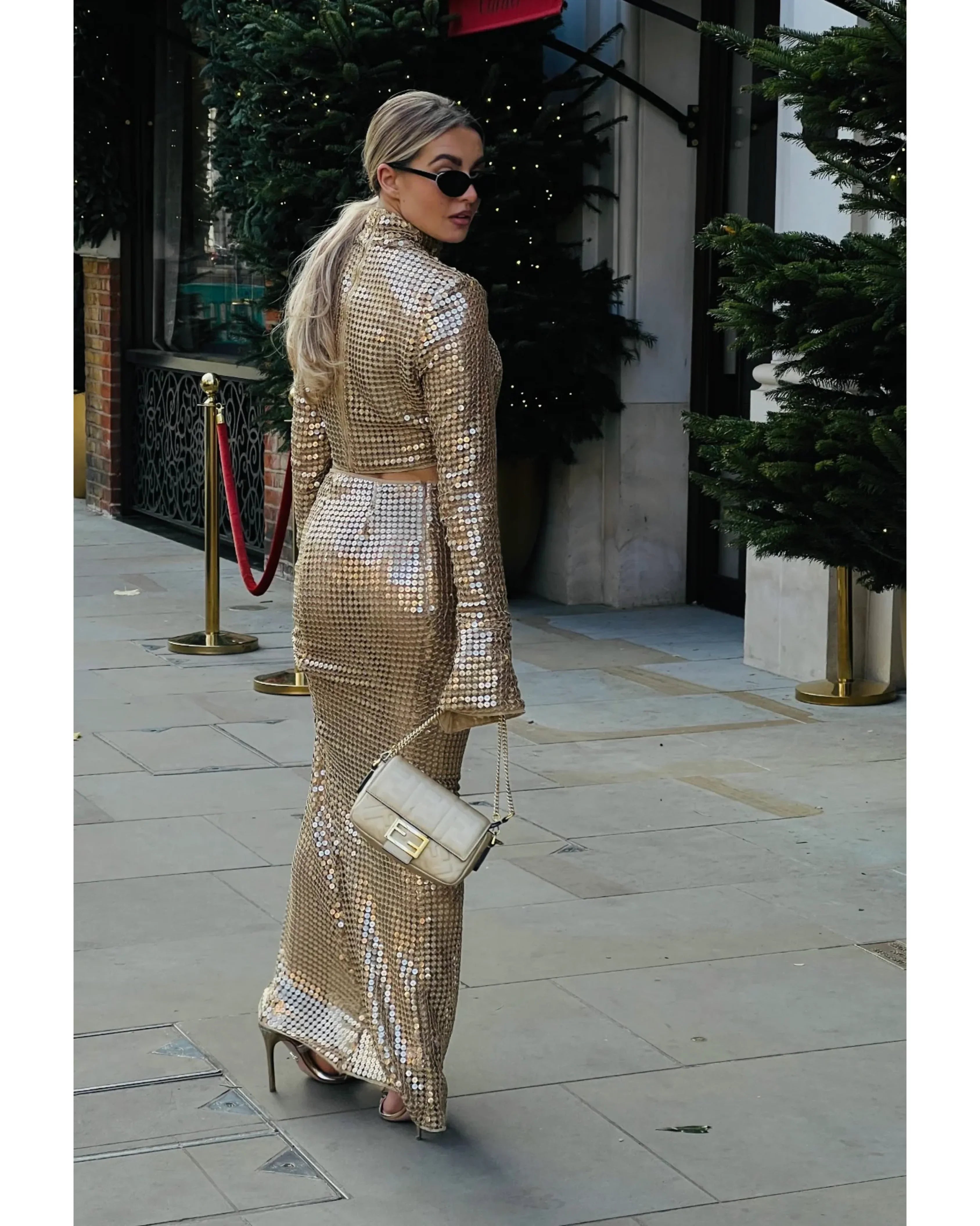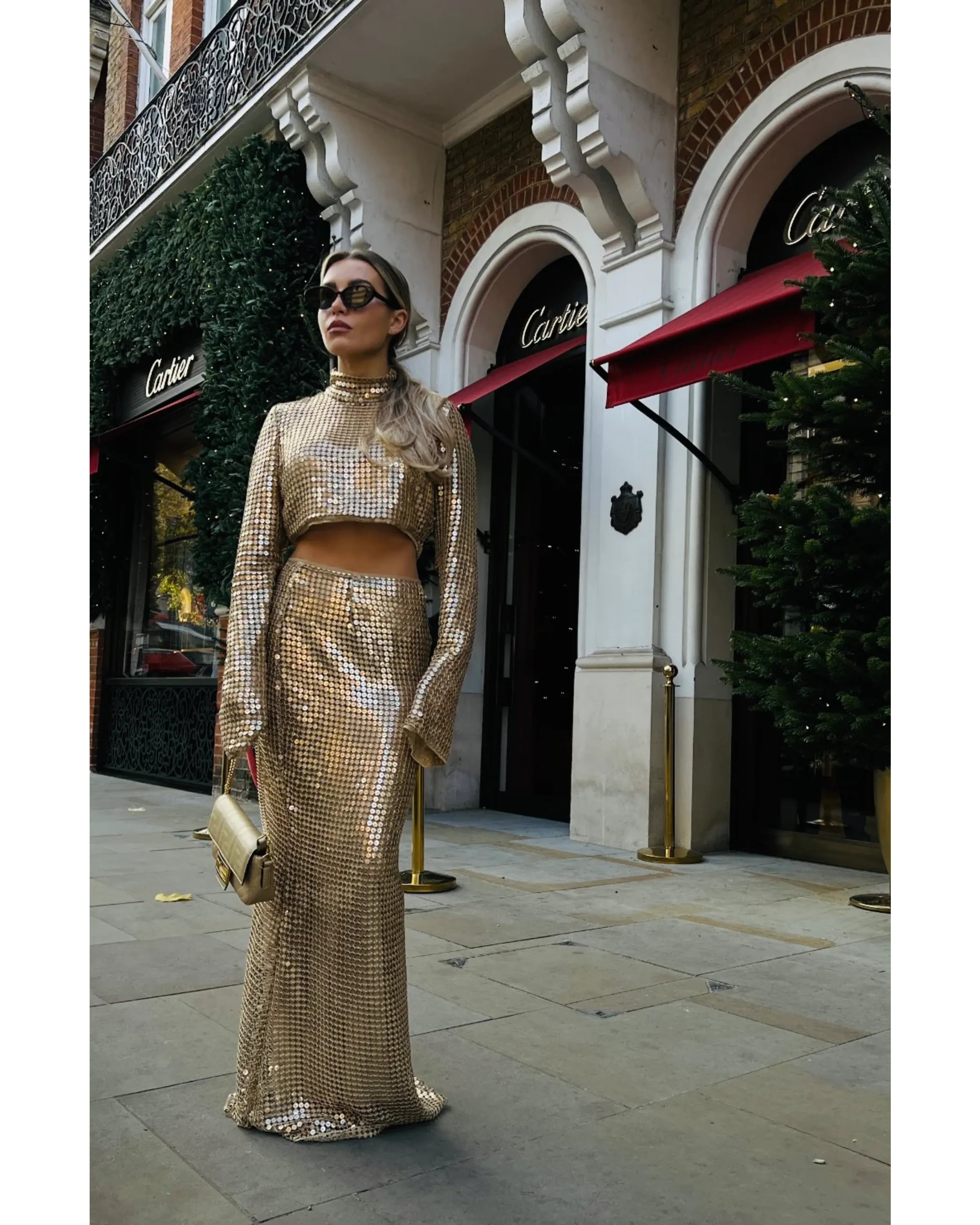 A stunning limited edition version of our best selling set. This gold two piece is a must have for the festive period. Only available to shop in the month of December. Let your outfit be as unique as you.