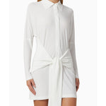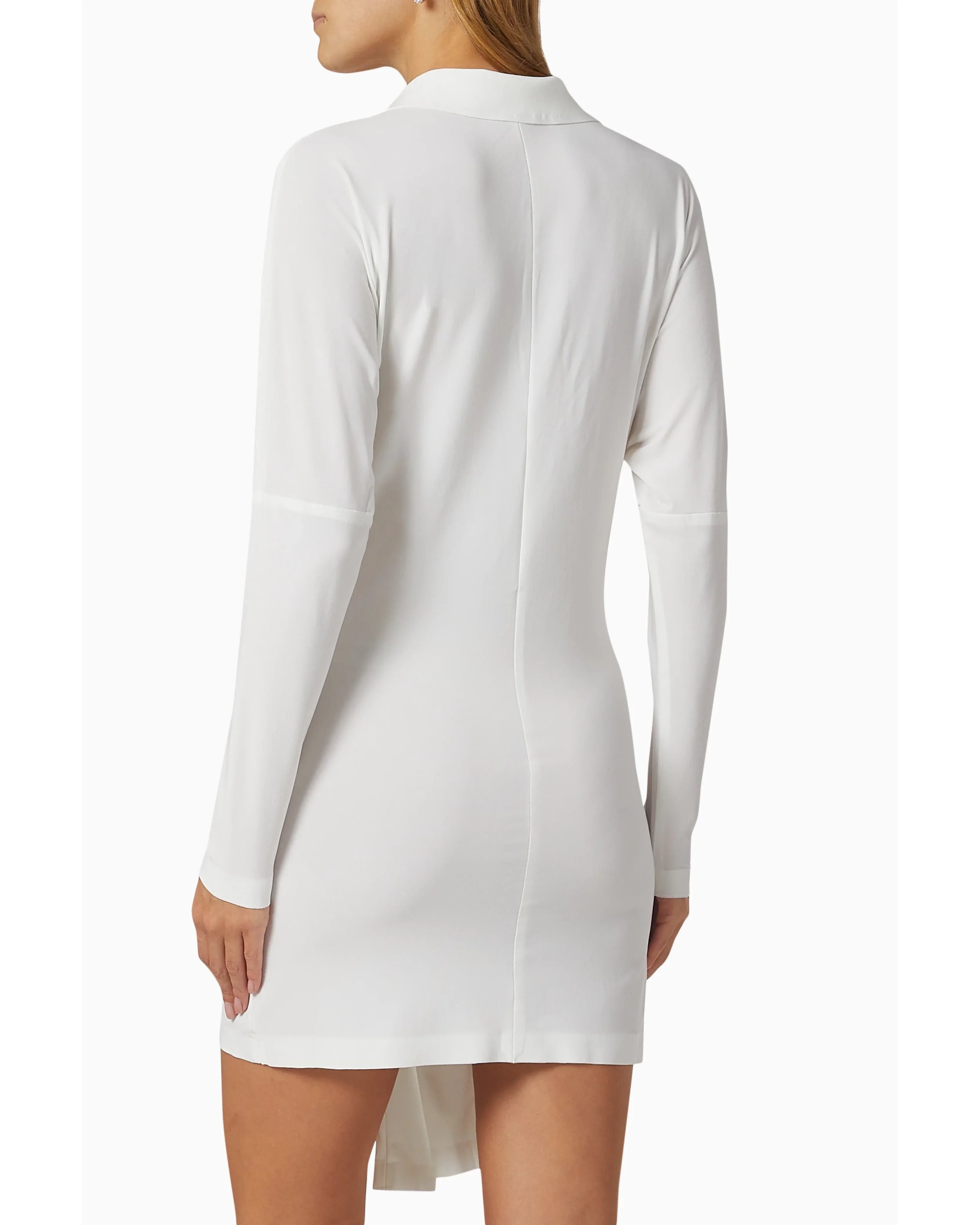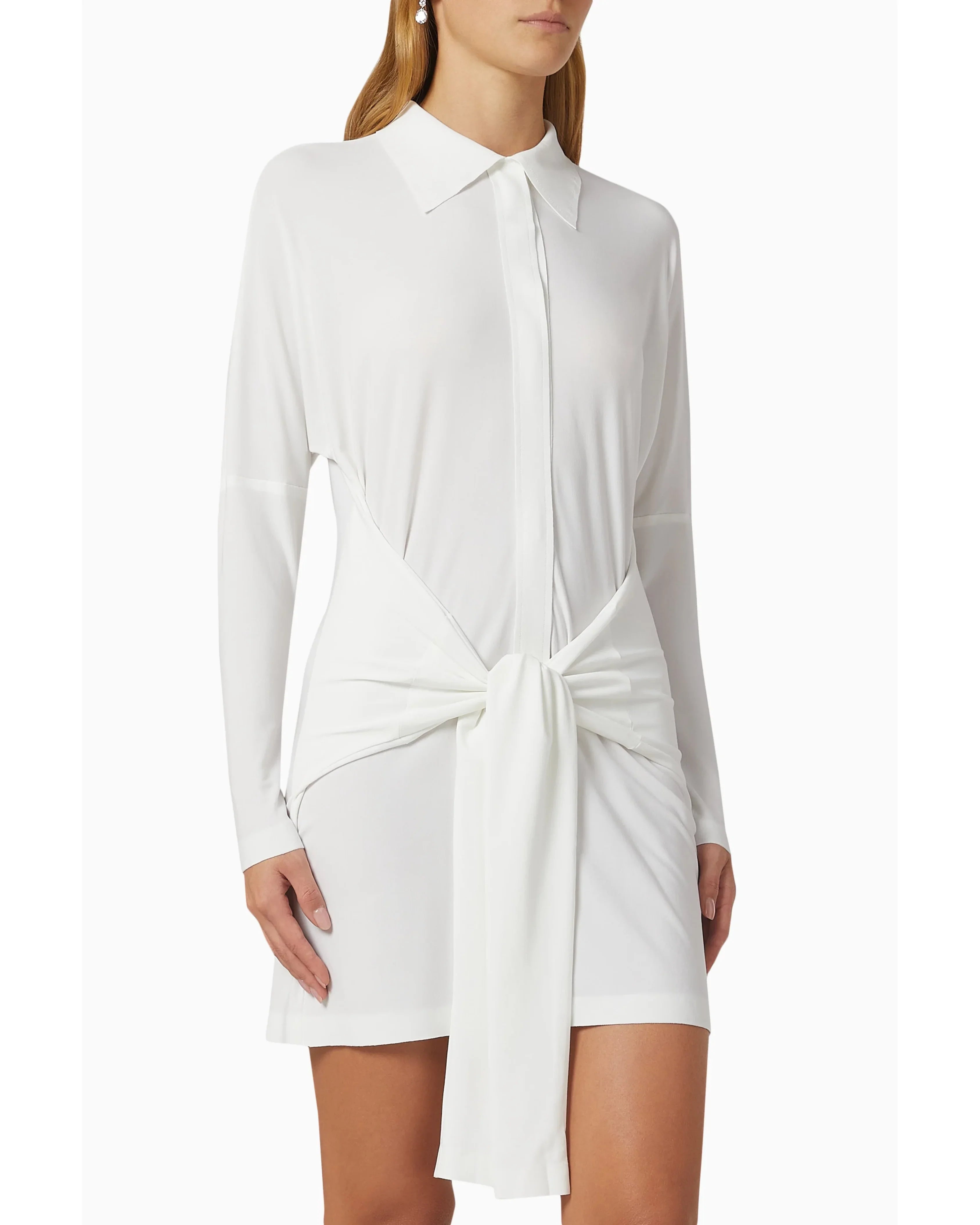 Effortless elegance is Norma Kamali's forte, as the TY mini dress proves. Made from the label's signature stretch fabric, it is elevated with subtle details, from a spread collar and sleeve-effect waist tie to the raw-cut edges.