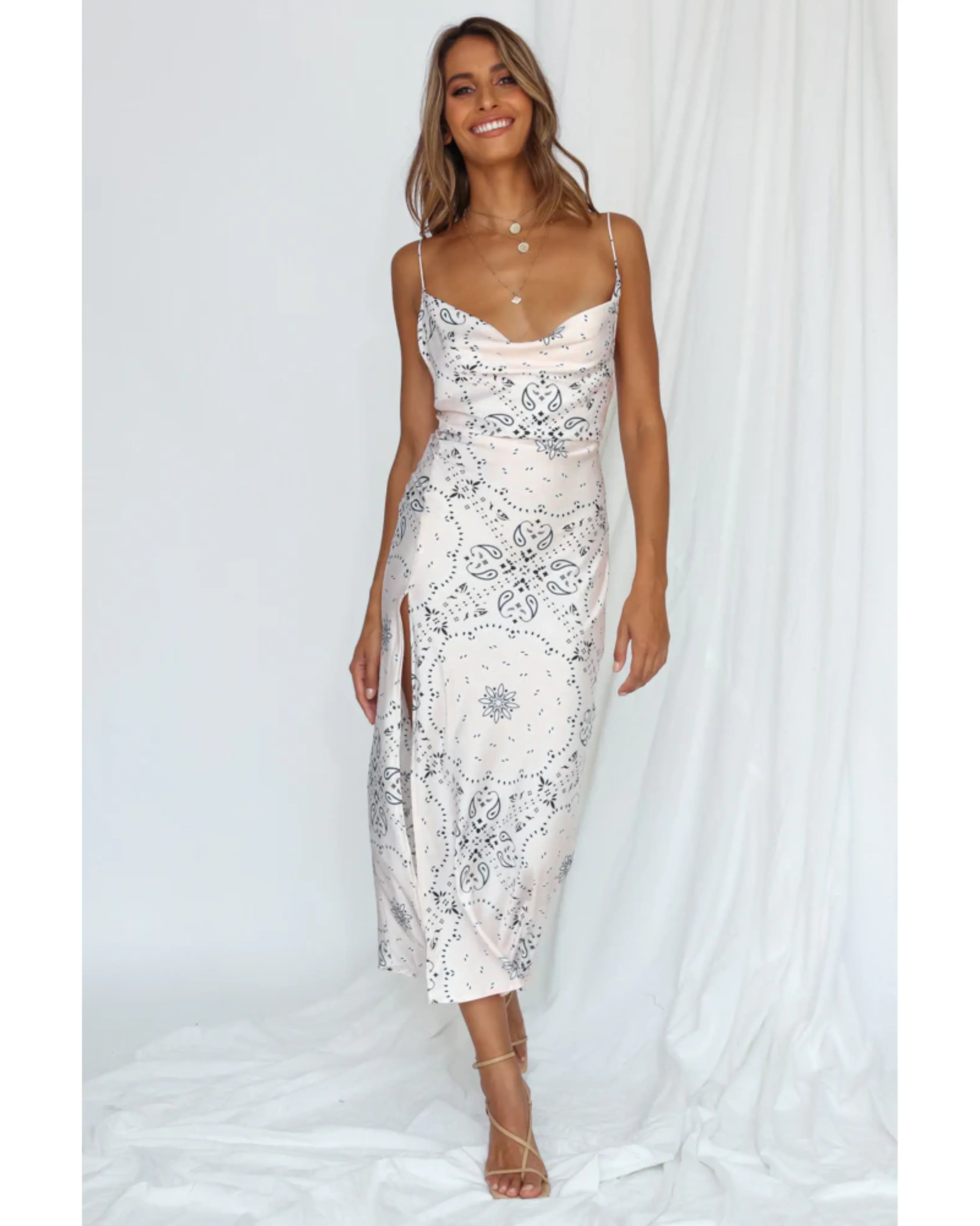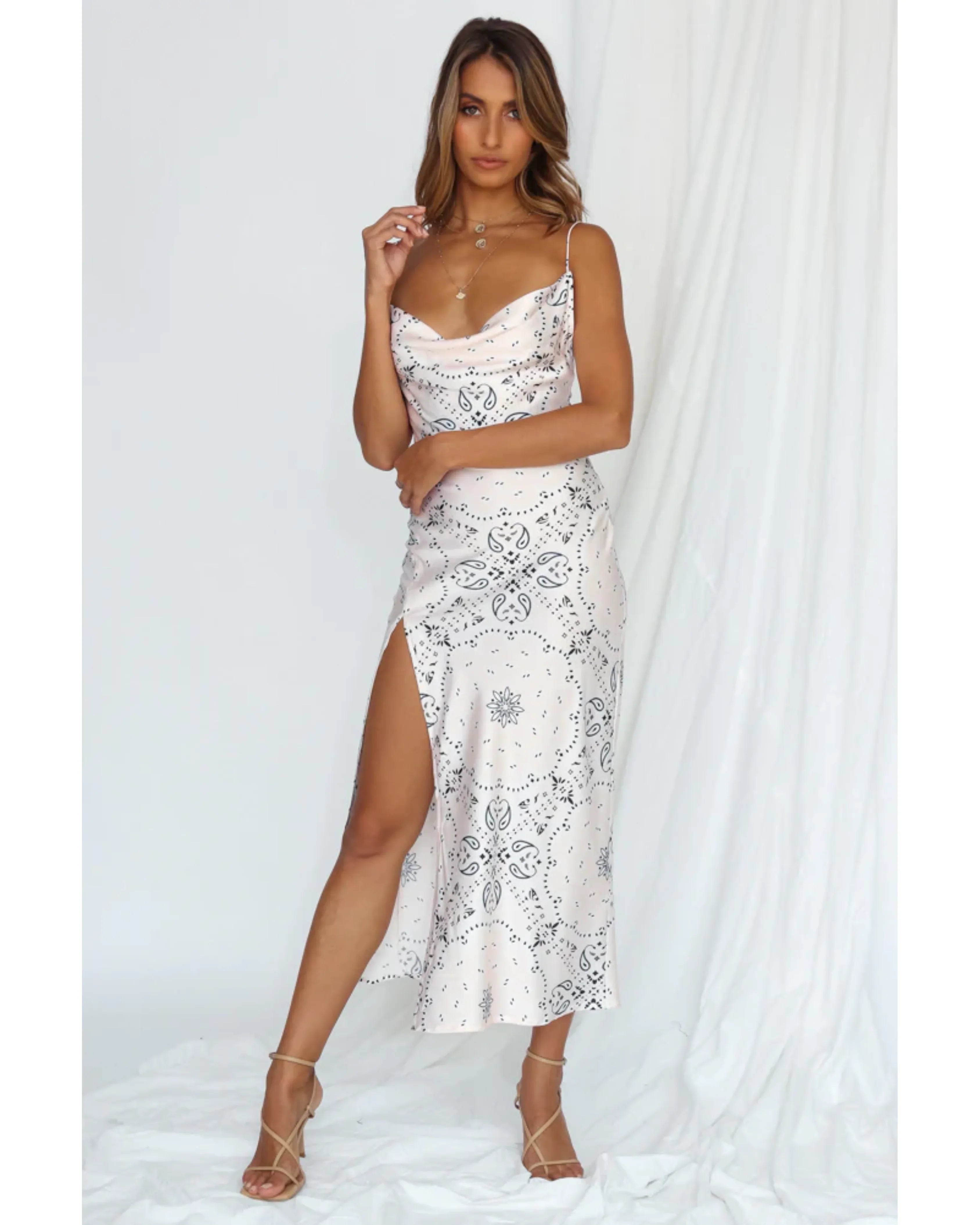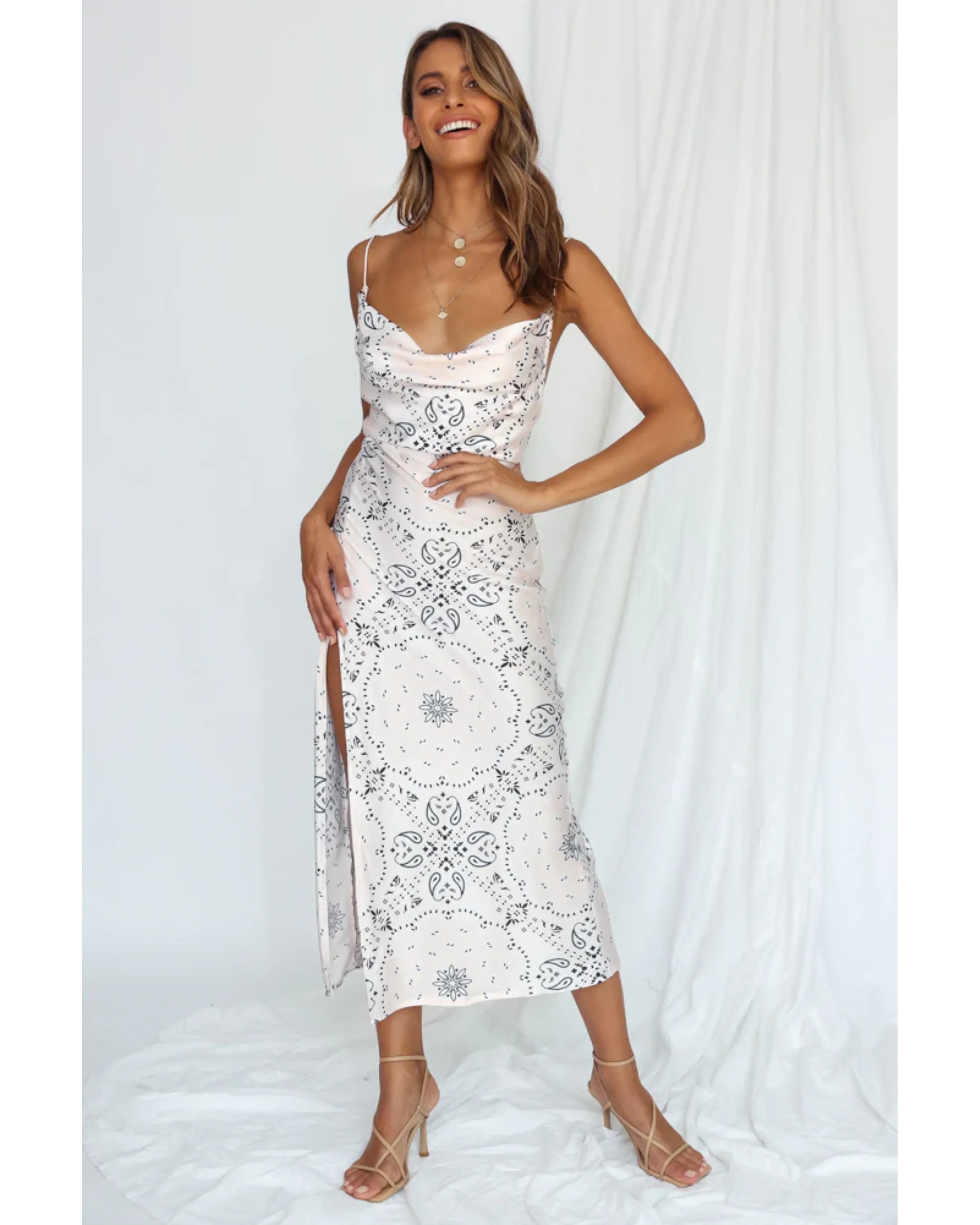 Our LIONESS Walk The Line Midi Dress was made for your nights out in Capri. Style yours with heeled mules and golden adornments.