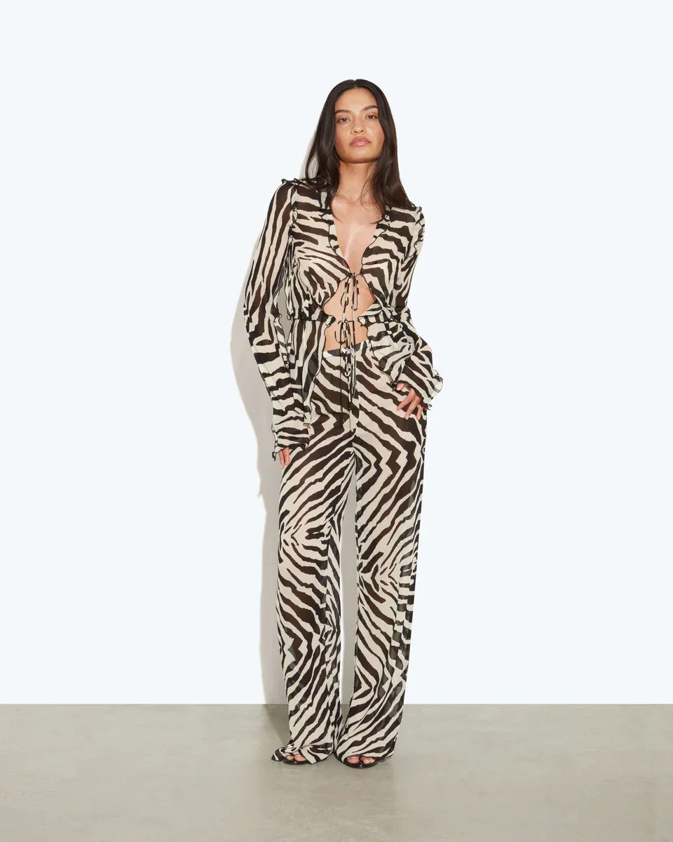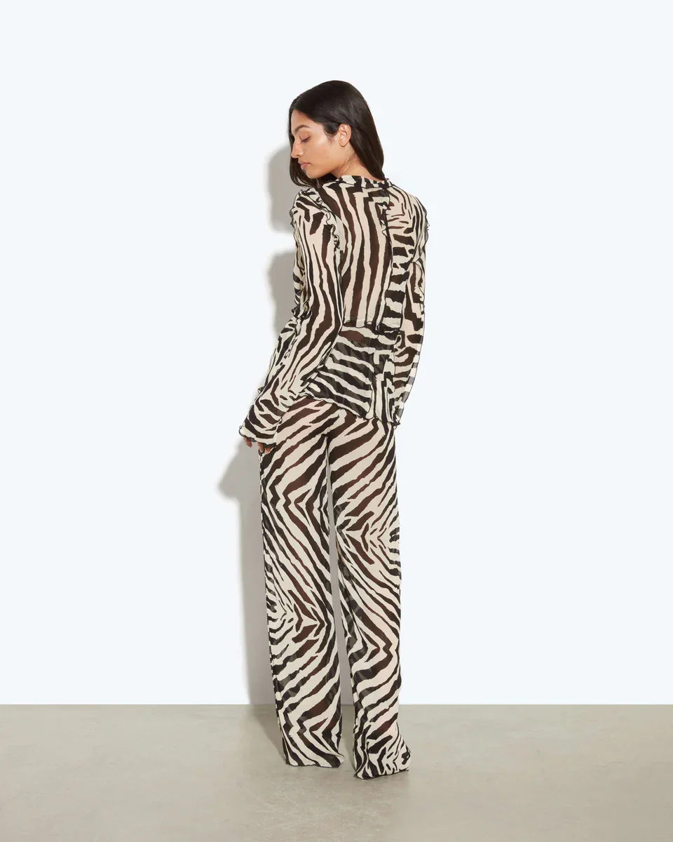 Printed in striking zebra, these slinky trousers sit just below the waist and are cut to a relaxed silhouette. Perfect for pairing with our Zephyr blouse for maximum monochrome impact.
