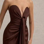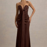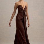 Mackenzie Satin Plunge-Neck Draped Maxi Dress