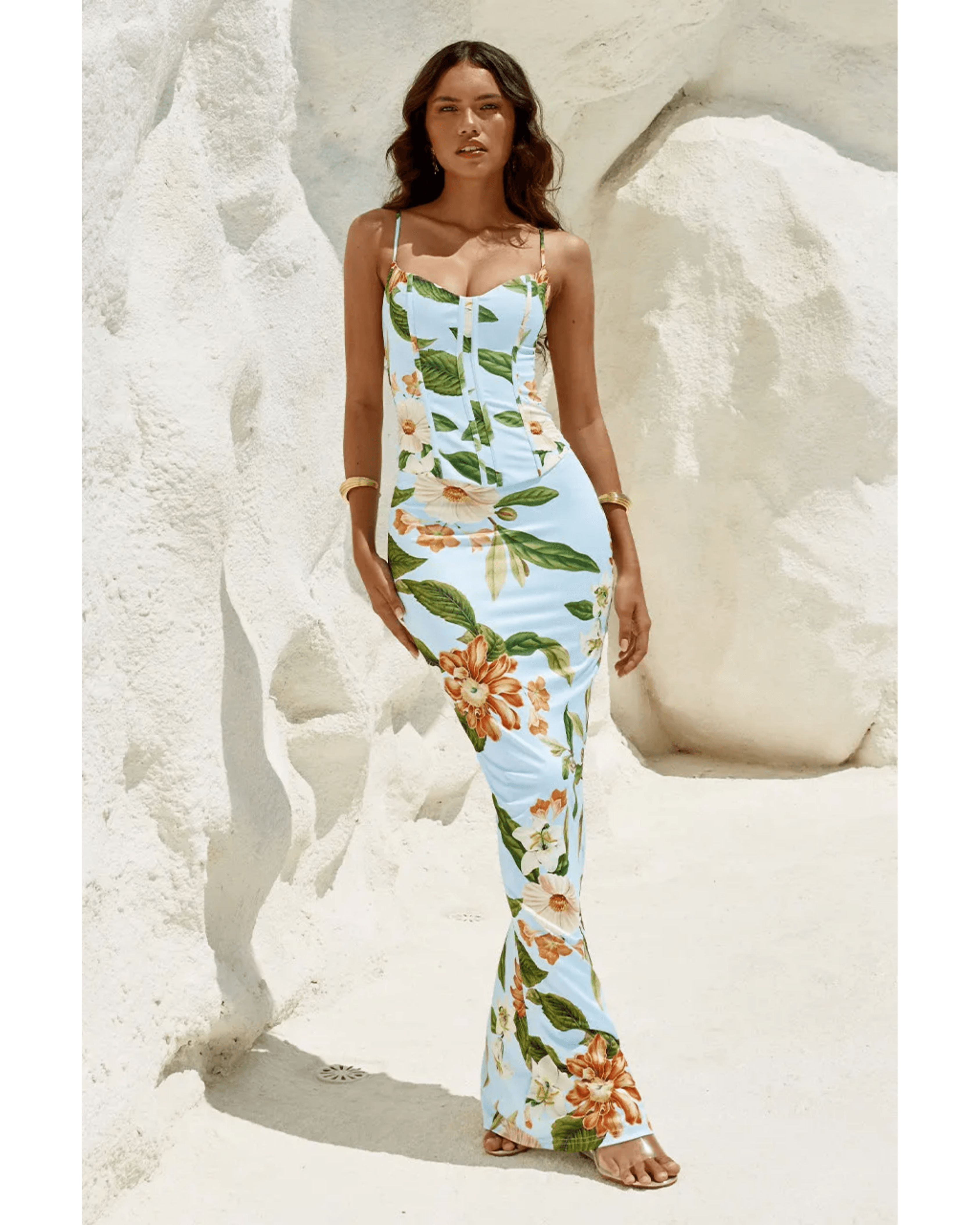 With boning and a corset tie up back, our Amiara Co-ord Set accentuates femininity with its shape and print, match.