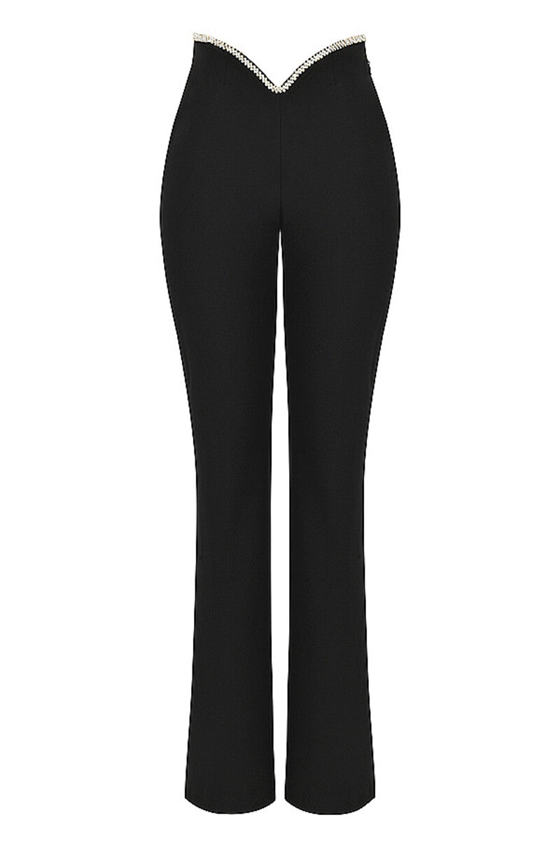 - Made from stretch black crepe, these trousers are party perfect with a slim sleek fit and straight legs. The crystal trimmed waistline dips to the front for a flattering fit. Fully lined to the knee, they zip to the side for easy on.