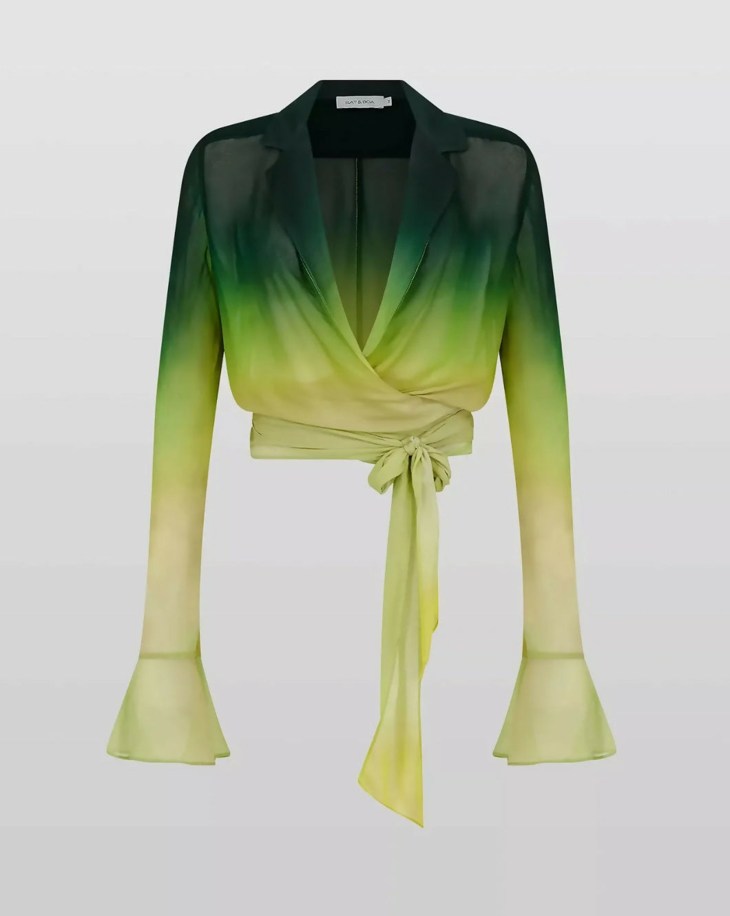 Bold, bohemian and beautiful, the Cypress shirt and skirt is a signature Rat & Boa shape conjured in dip-dyed green, ready to be styled your way.